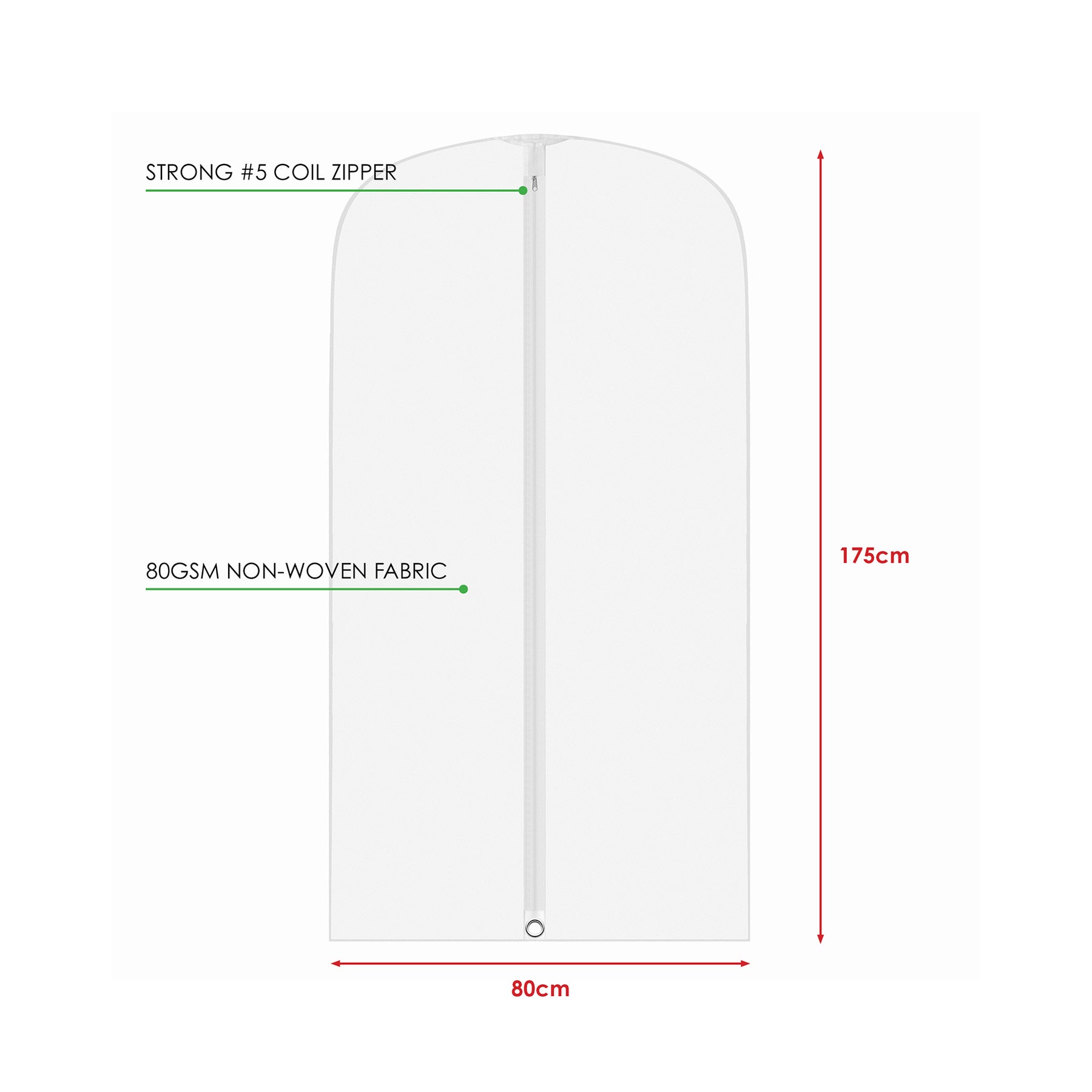This bag is made from 80gsm non-woven fabric and features a sturdy #5 coil nylon zipper, hanging eyelet and dust-proof opening for hanger.