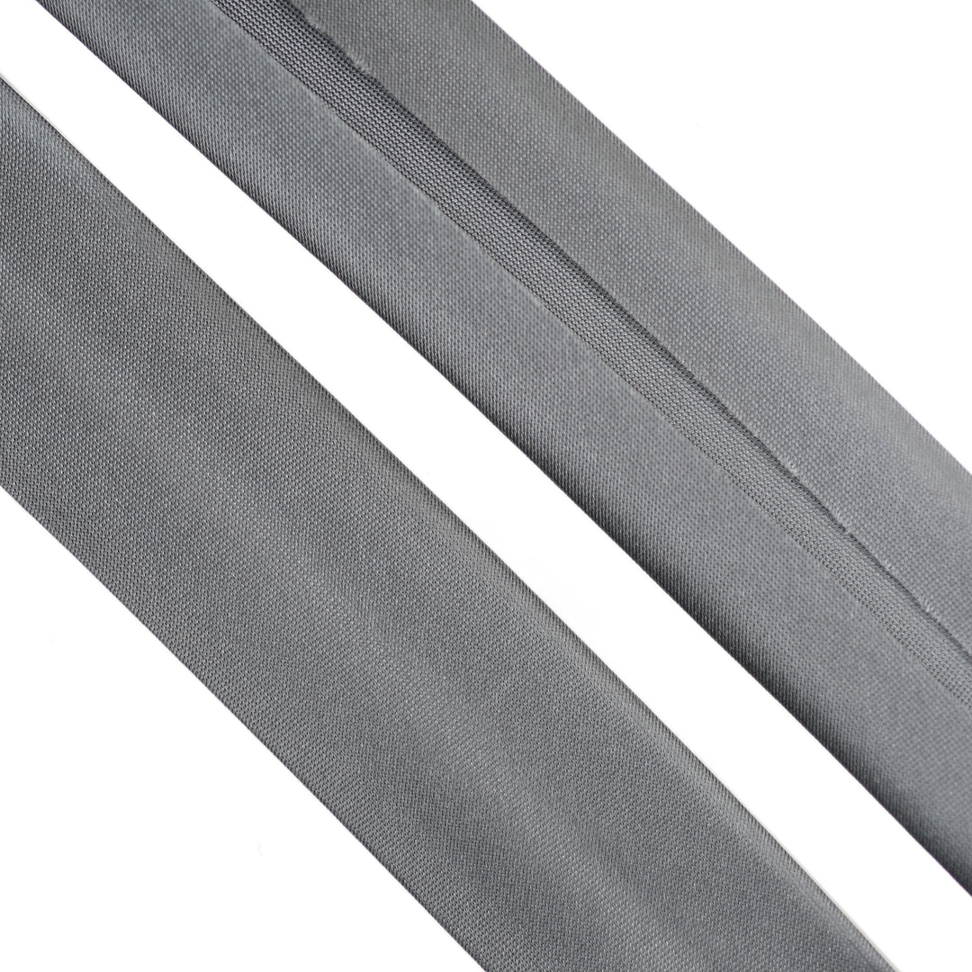 100% acetate bias binding, approx. 115gsm. High sheen finish with single fold (see image of reverse of tape). Note that width may vary 1mm - 1.5mm due to bias stretch.