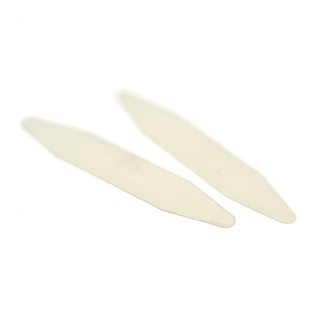 Lightweight and flexible collar stays for use in shirts. Smooth, ultra-light acrylic is suitable for delicate fabrics. Length of stay is 45mm with dual-point ends and rounded finish.