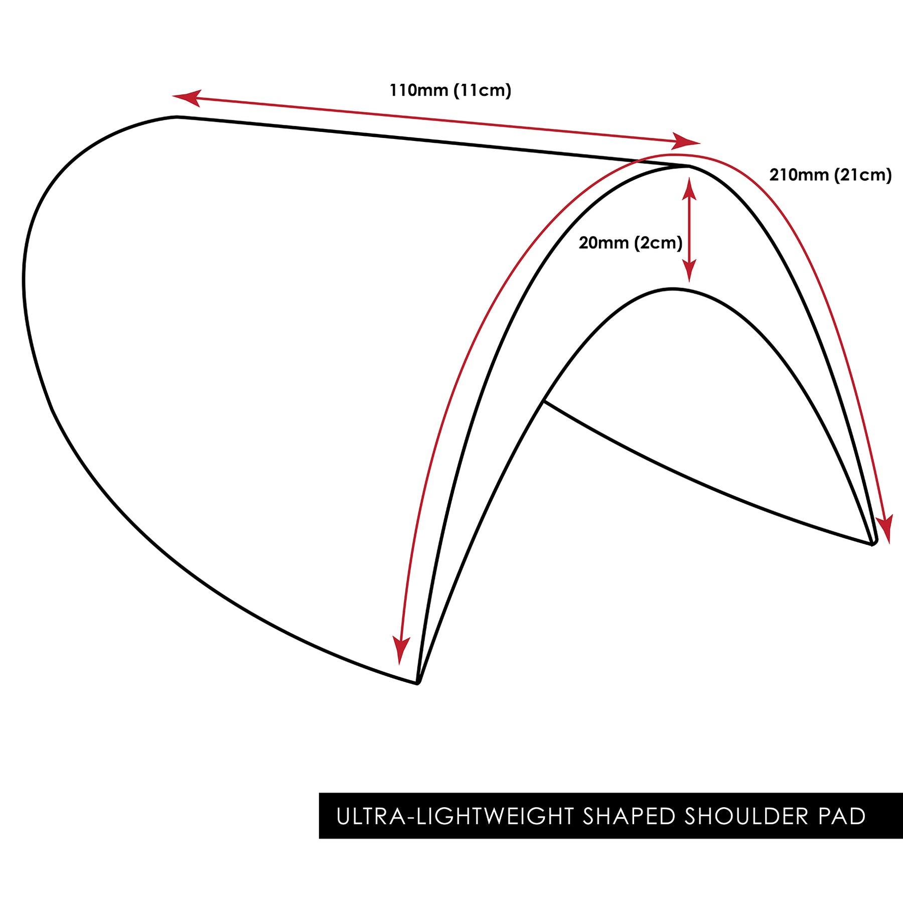 Structured, lightweight shoulder pad with high-quality dense fill. 20mm (2cm) at peak.