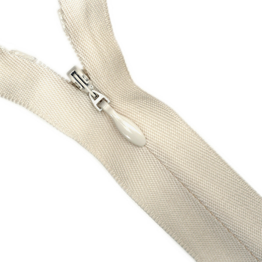 JackStock exclusive heavy-duty invisible zips offer a discreet and concealed zipper while enabling a secure closure. Large coil size and heavy poly cotton tape provide firm and durable functionality. Features teardrop slider in colour-matched hue. Ideal for bridal, gowns, and corsetry.