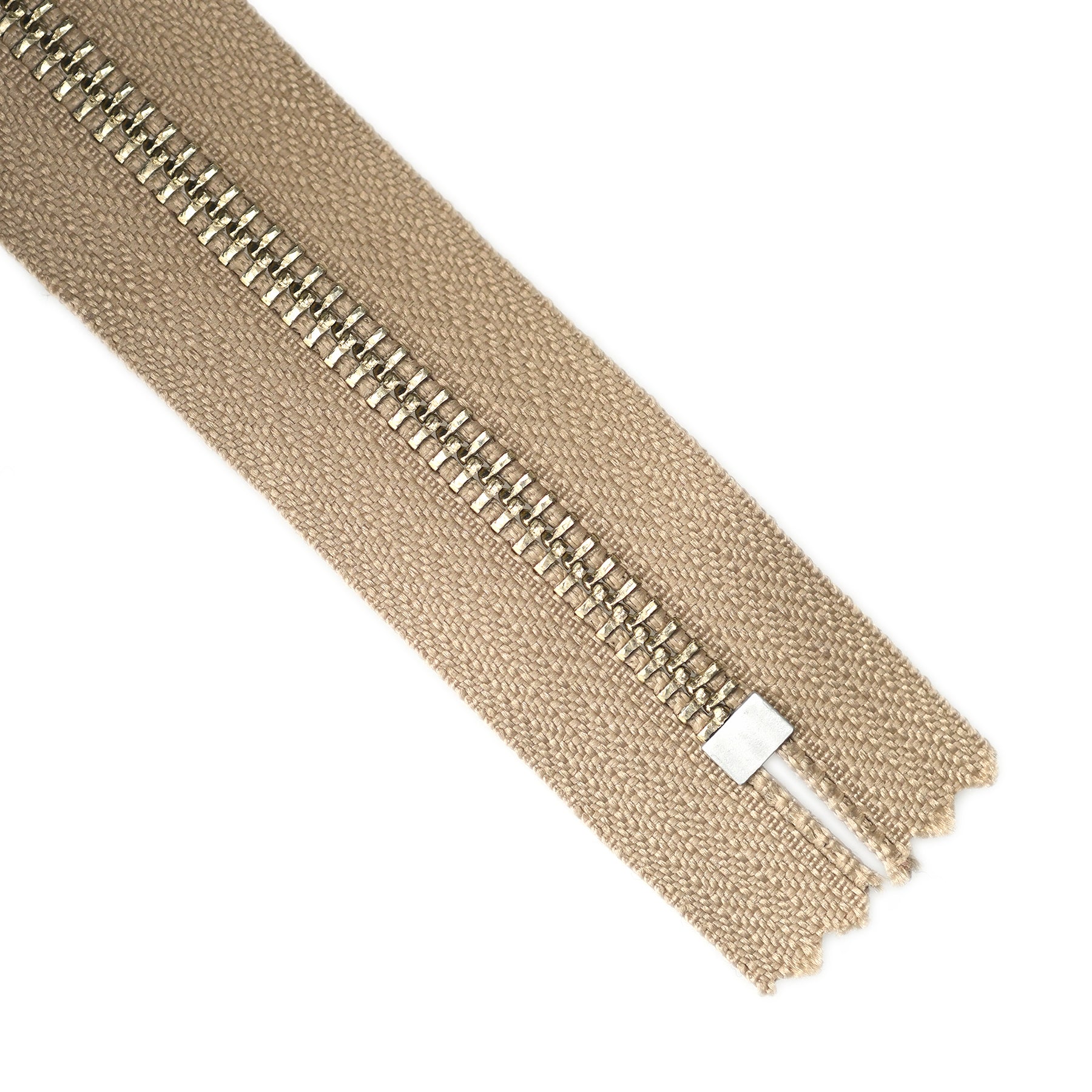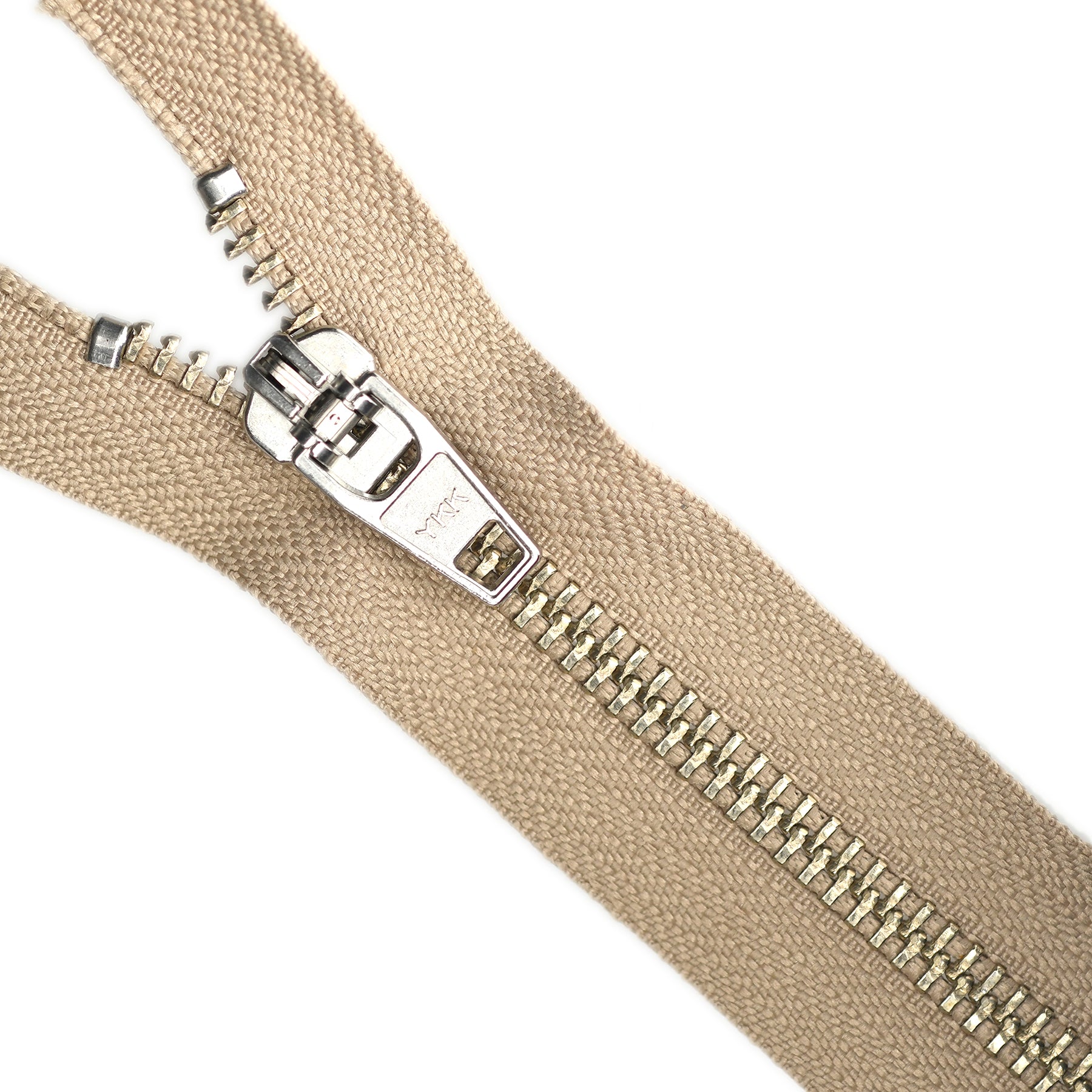 Medium gauge YKK jean zip designed specifically for use on denim jeans and jackets with elements in nickel. Hard-wearing jean zips that are suited to workwear, outdoor-wear, and heavy-duty fabrics.