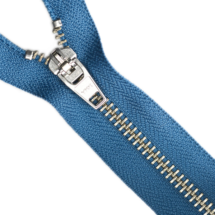 Medium gauge YKK jean zip designed specifically for use on denim jeans and jackets with elements in nickel. Hard-wearing jean zips that are suited to workwear, outdoor-wear, and heavy-duty fabrics.