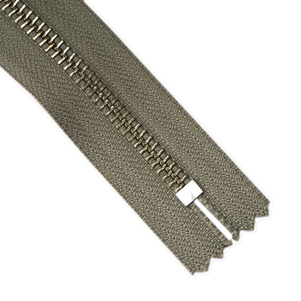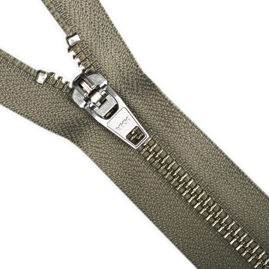 Medium gauge YKK jean zip designed specifically for use on denim jeans and jackets with elements in nickel. Hard-wearing jean zips that are suited to workwear, outdoor-wear, and heavy-duty fabrics.