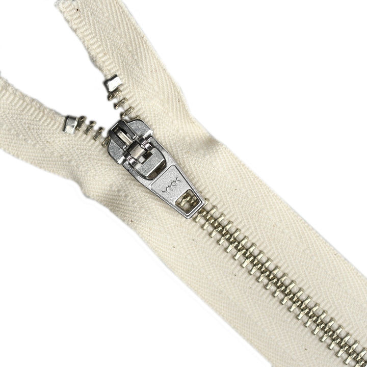 Medium gauge YKK jean zip designed for use on denim jeans and jackets with elements in nickel.