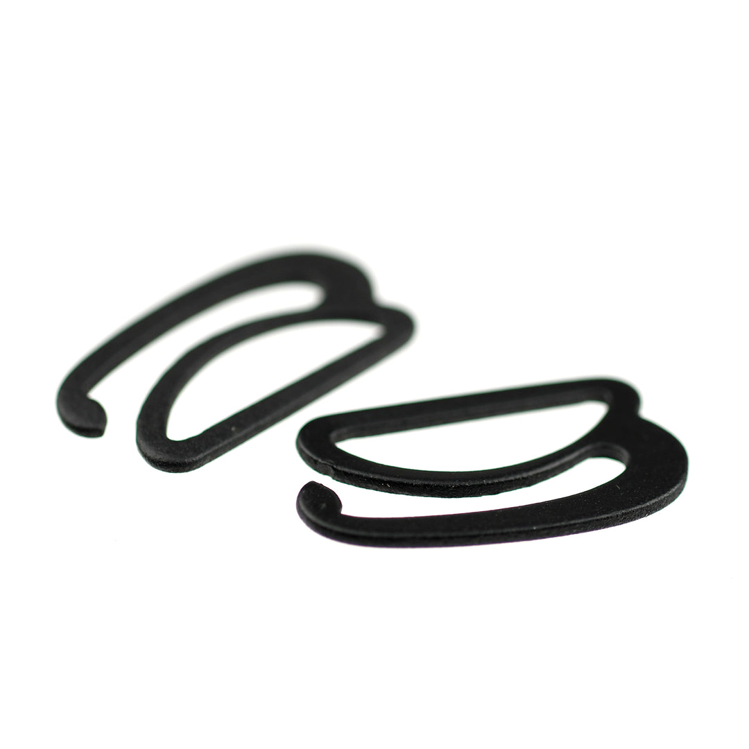 Hard-wearing, coated steel hooks for use on garment straps and lingerie.