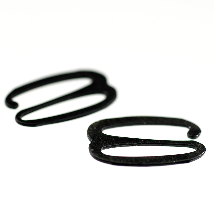 Hard-wearing, coated steel hooks for use on garment straps and lingerie.