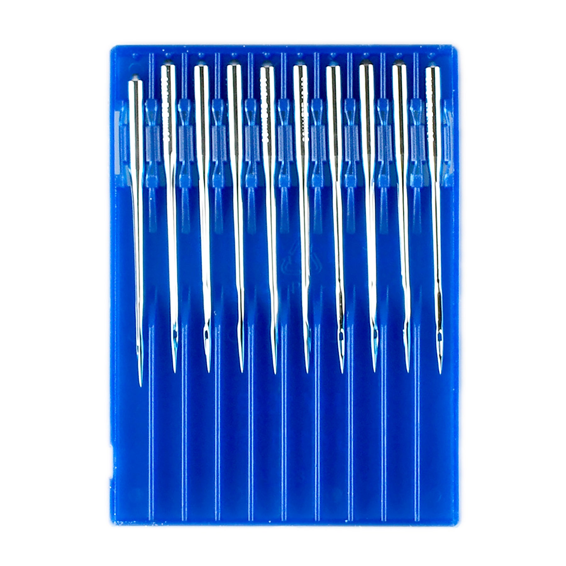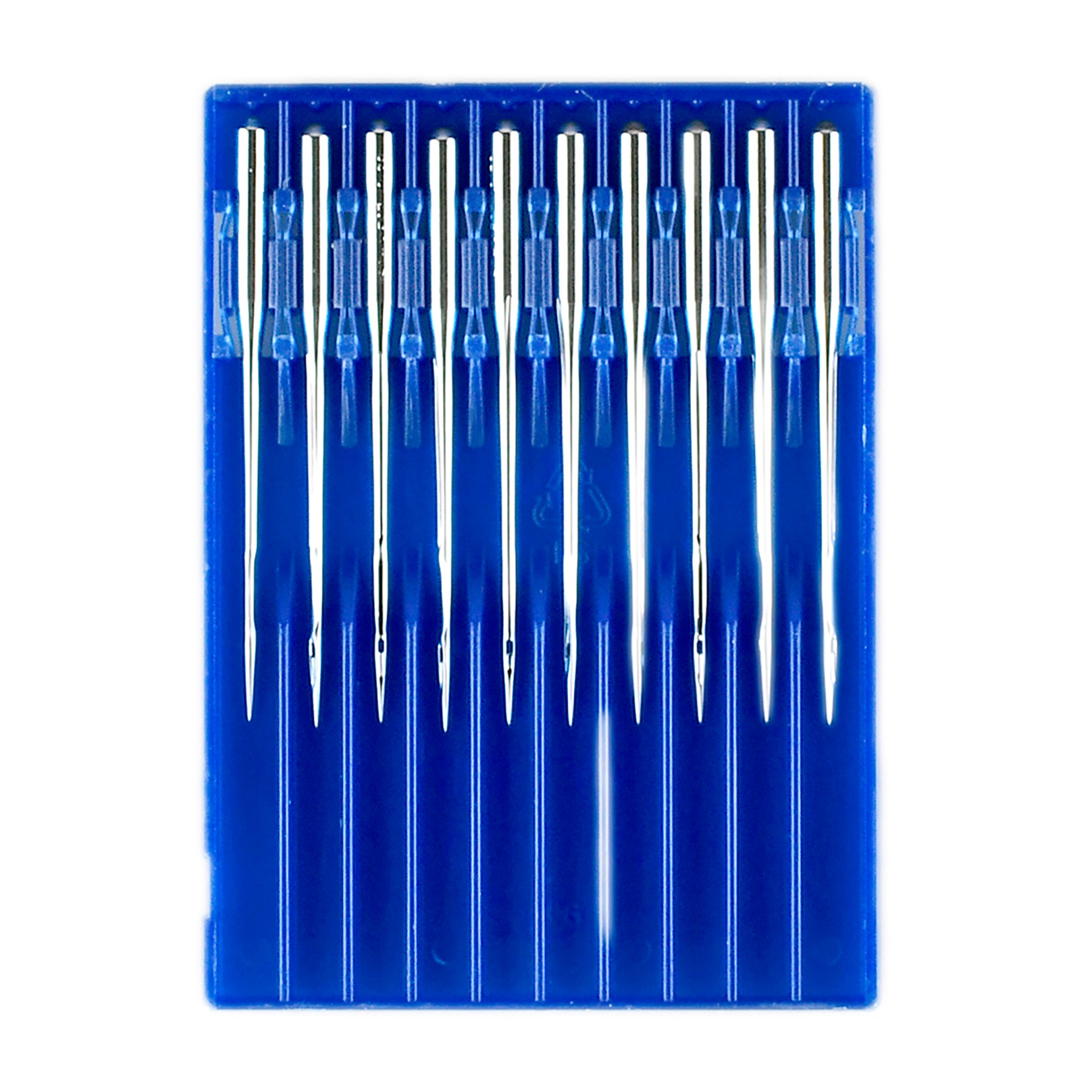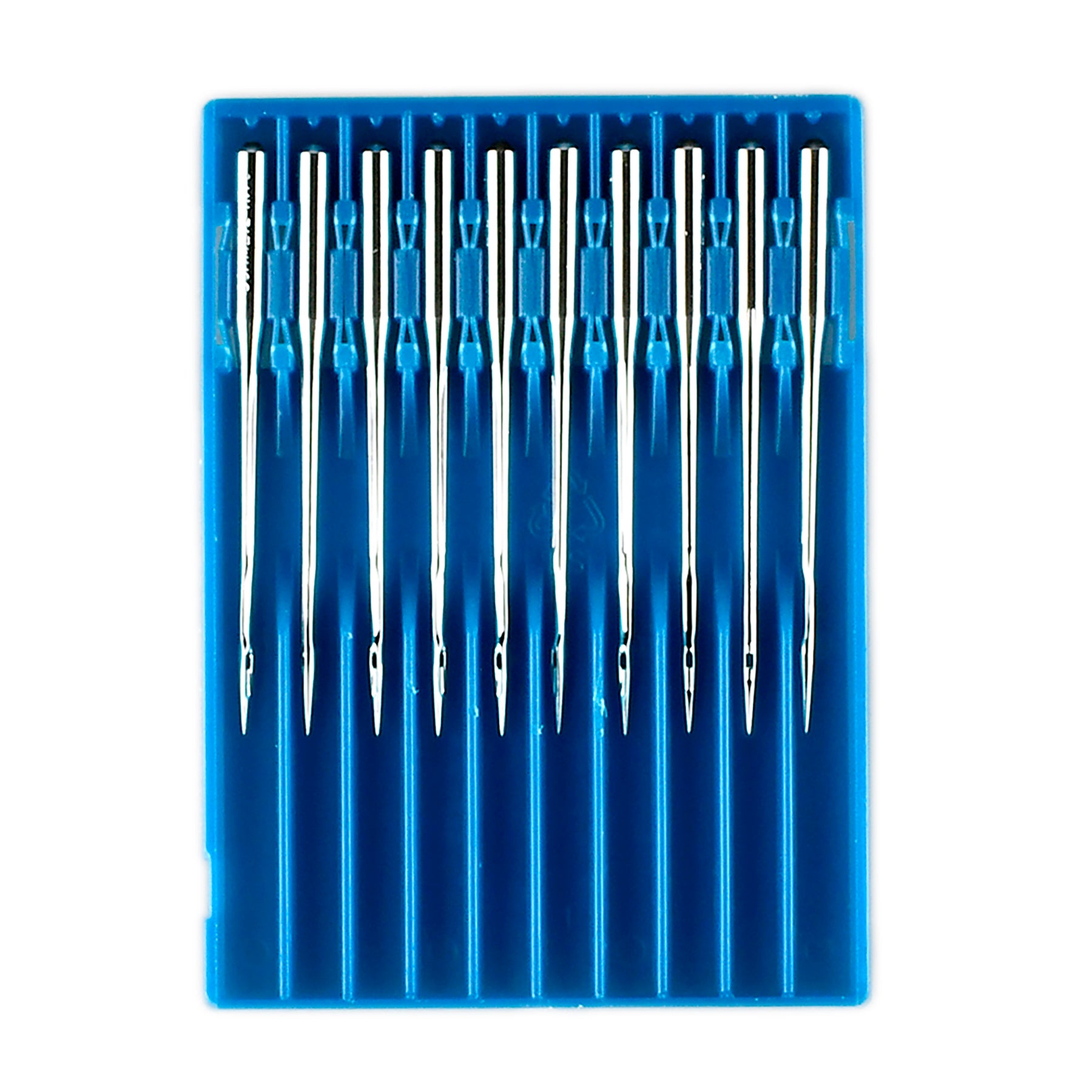 Machine needles for overlockers featuring a sharp-point tip. Suitable for most fabrics.