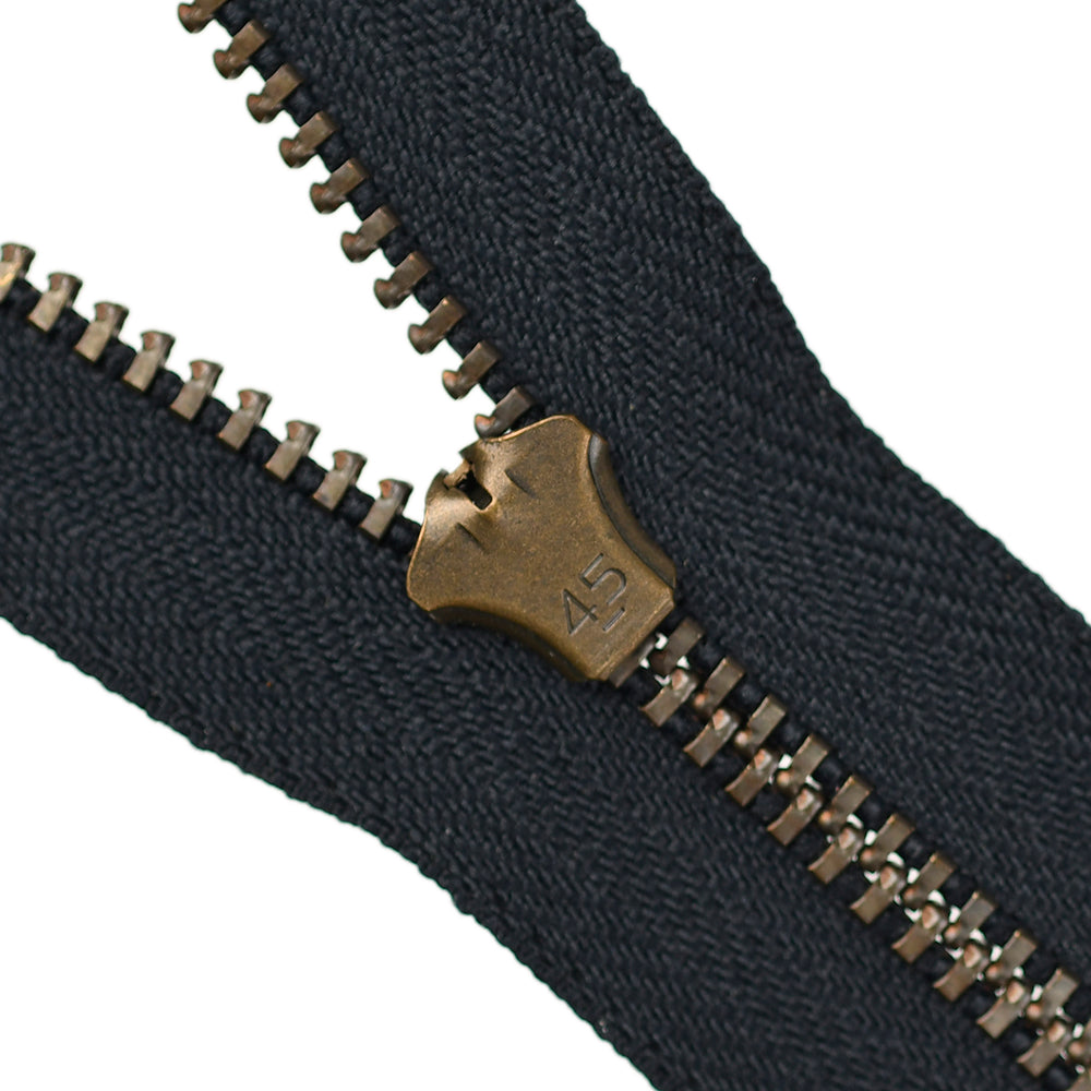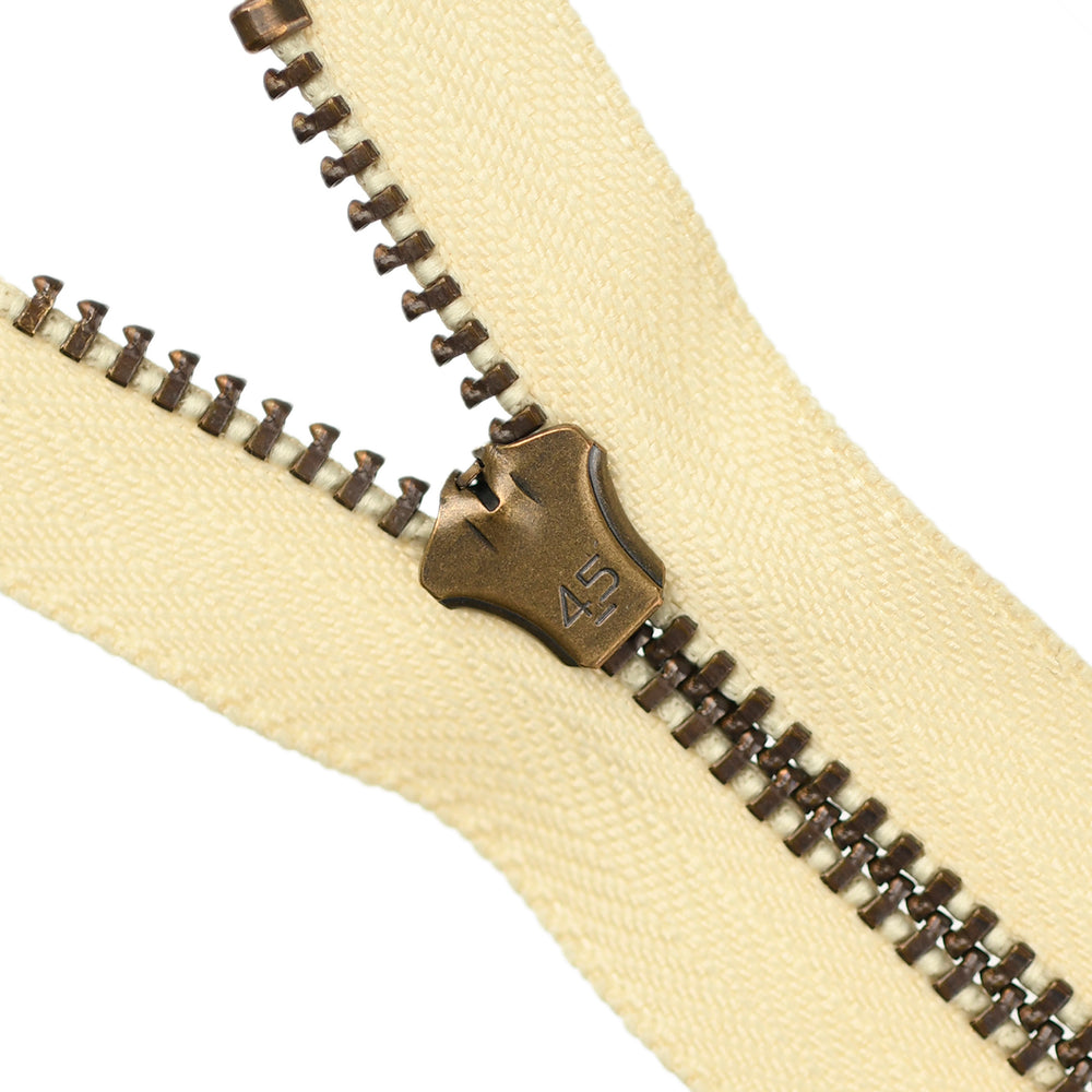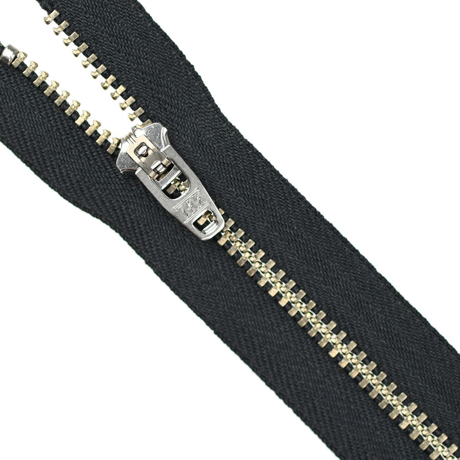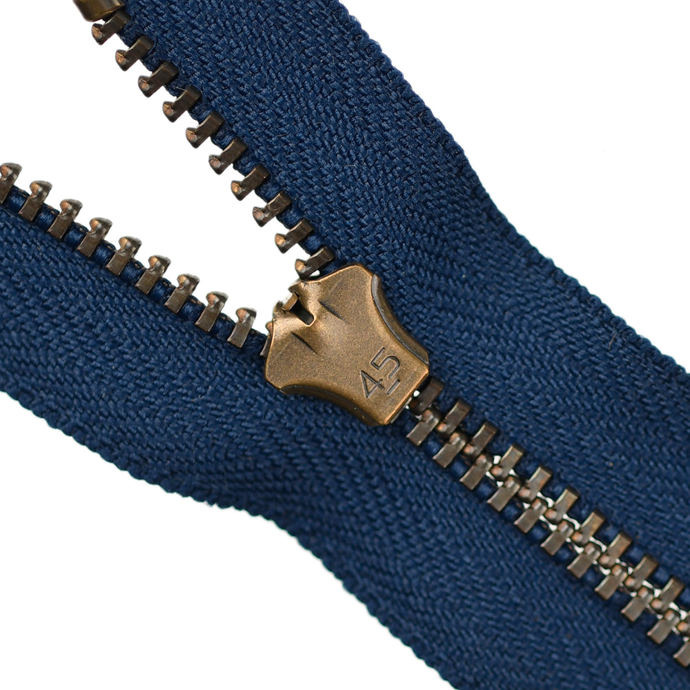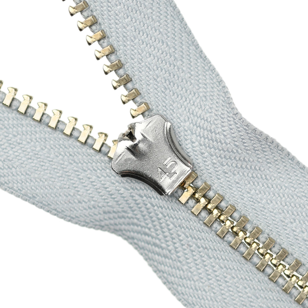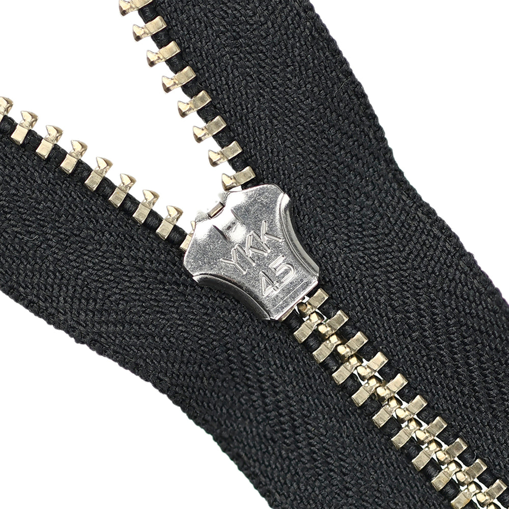 Lightweight, 4.5 gauge jean zips designed specifically for use on jeans and jackets. Features a semi-automatic, flip-lock slider in a selection of metal finishes.