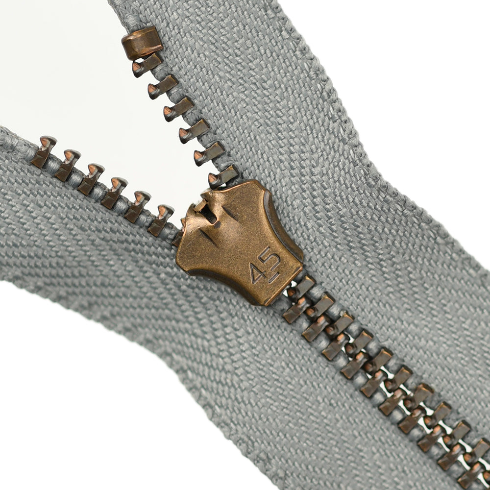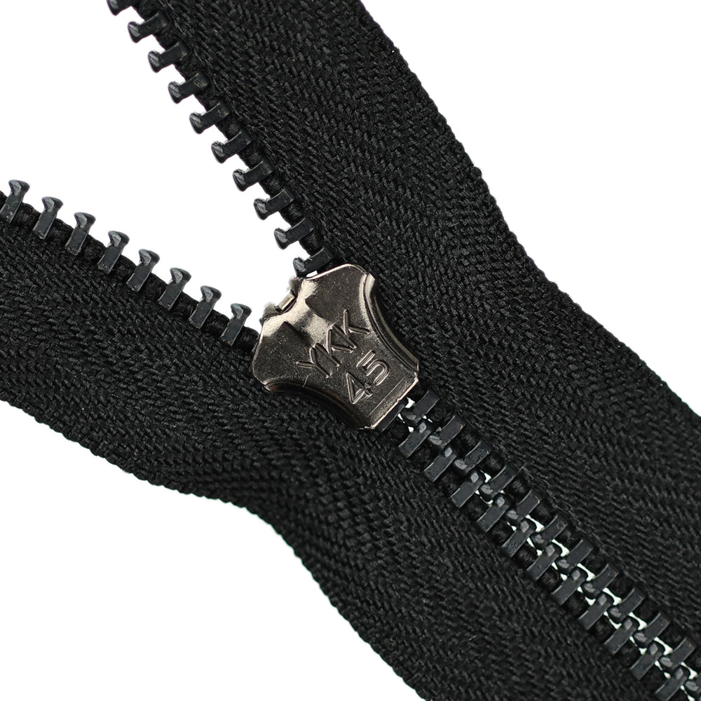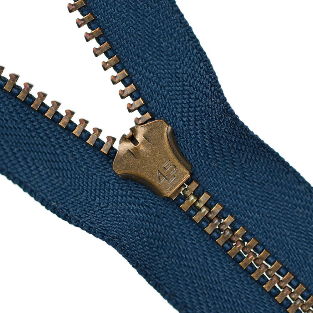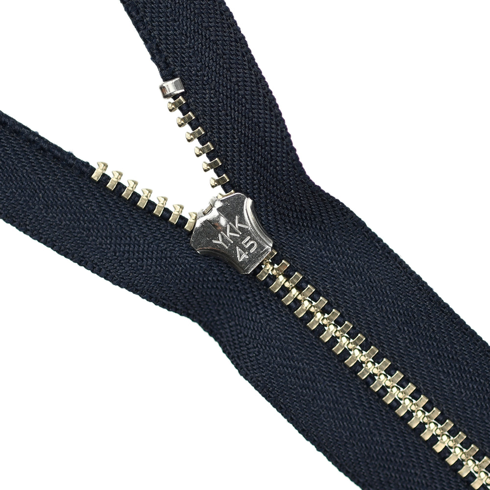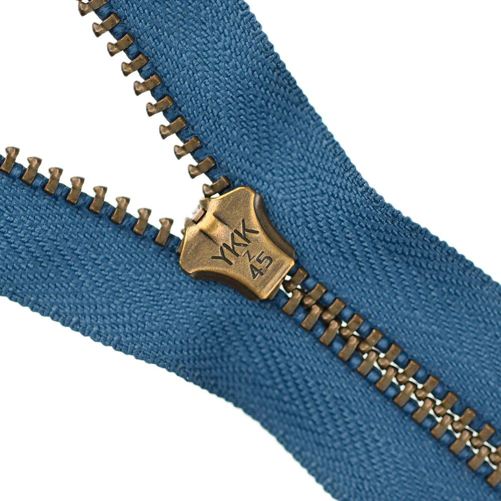 Lightweight, 4.5 gauge jean zips designed specifically for use on jeans and jackets. Features a semi-automatic, flip-lock slider in a selection of metal finishes.