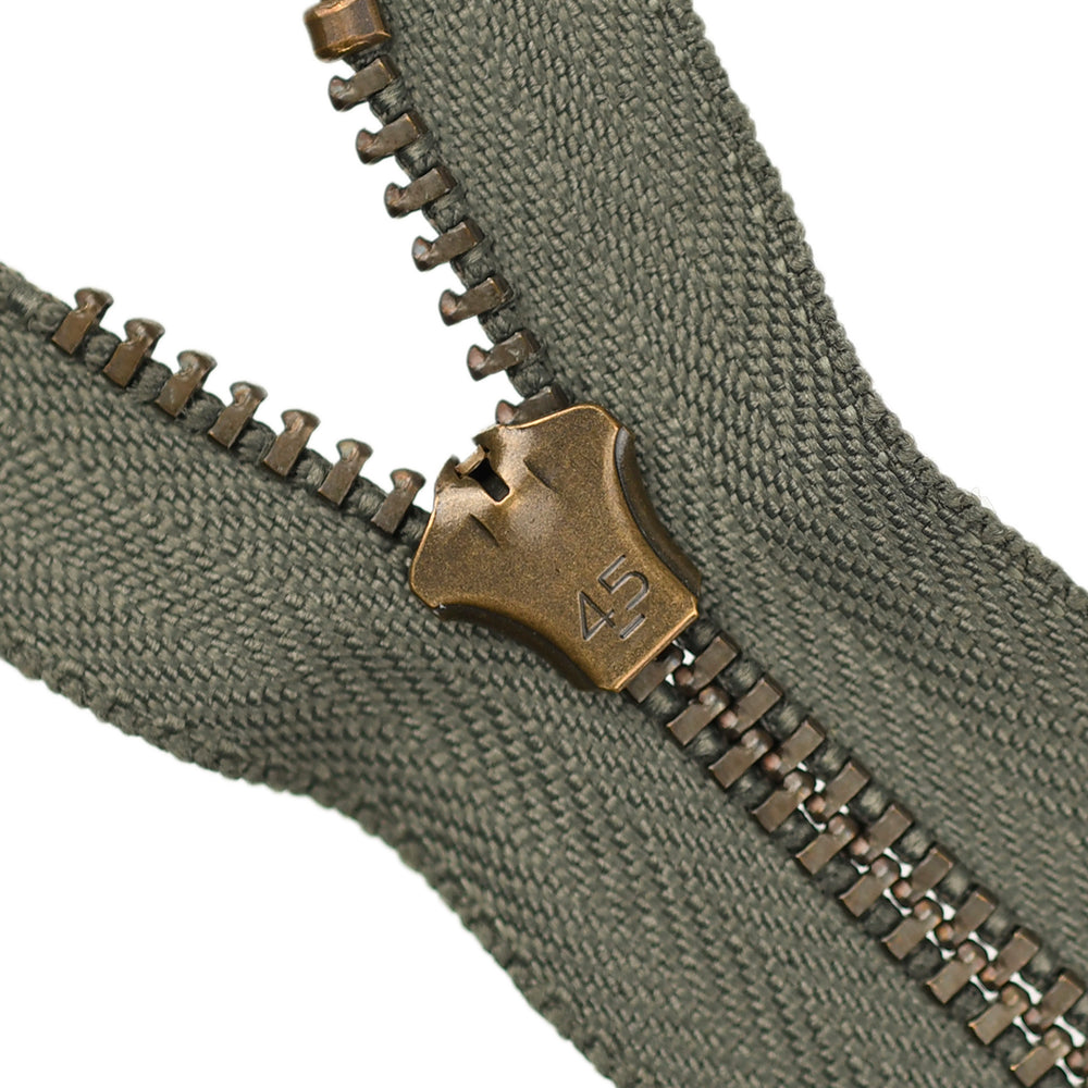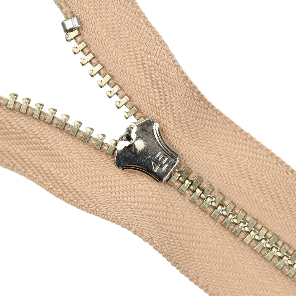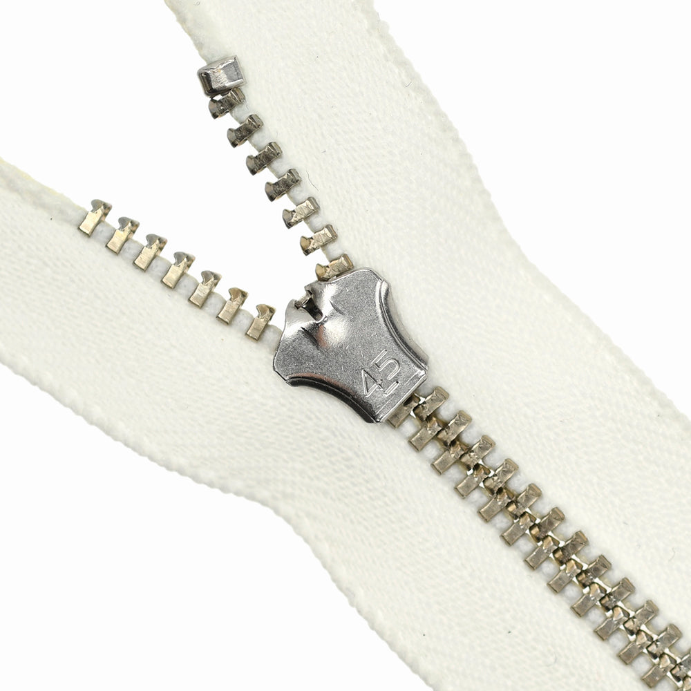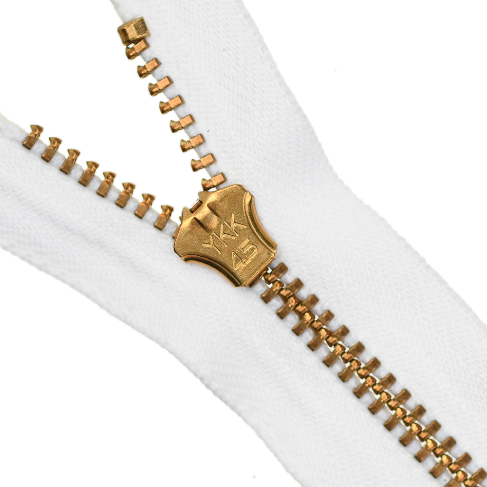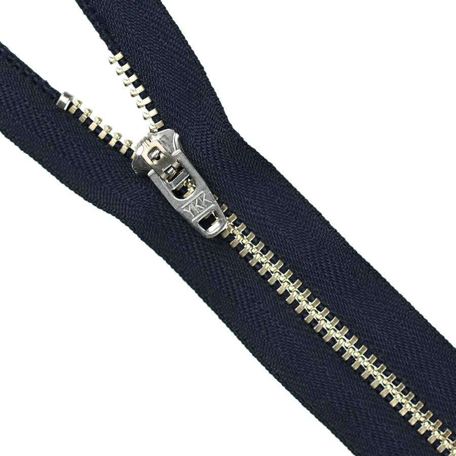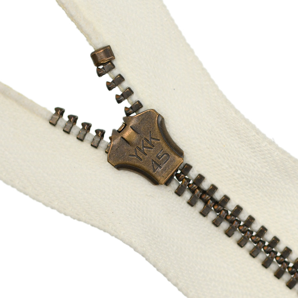 Lightweight, 4.5 gauge jean zips designed specifically for use on jeans and jackets. Features a semi-automatic, flip-lock slider in a selection of metal finishes.