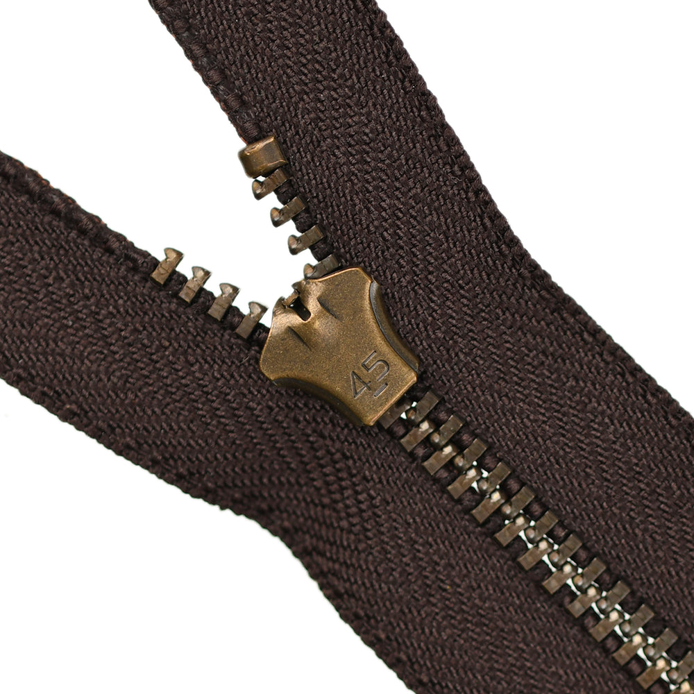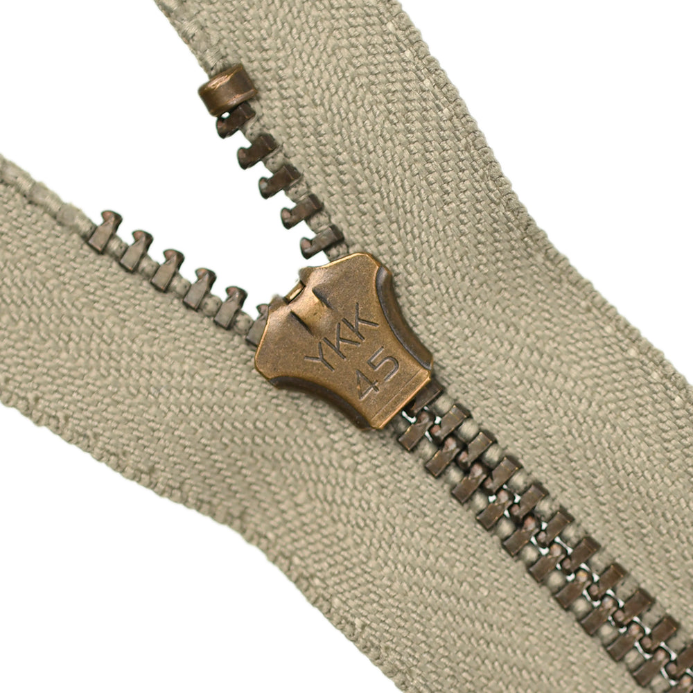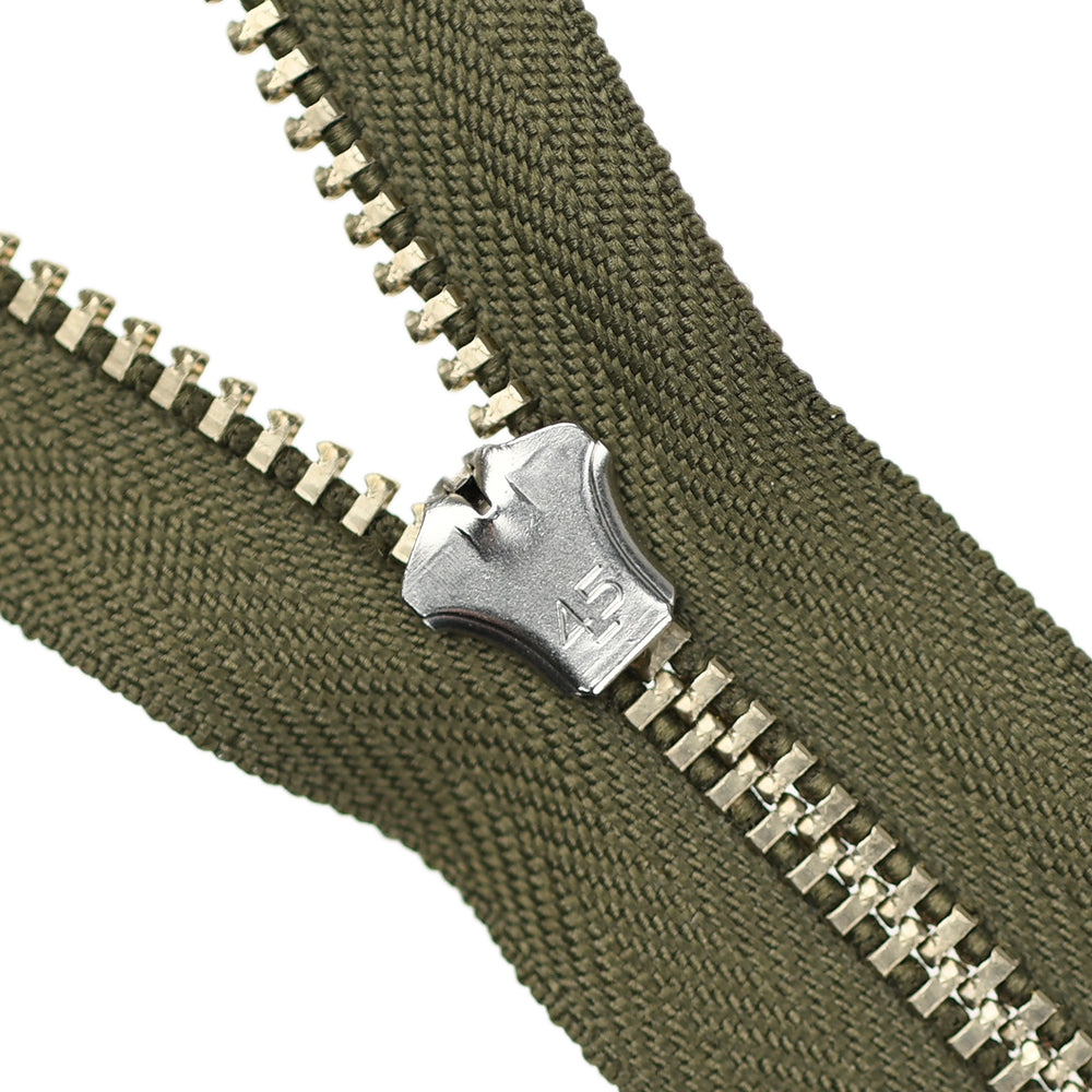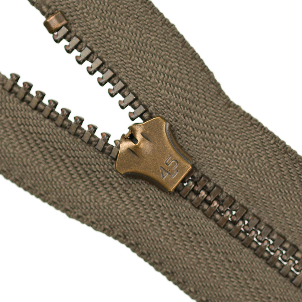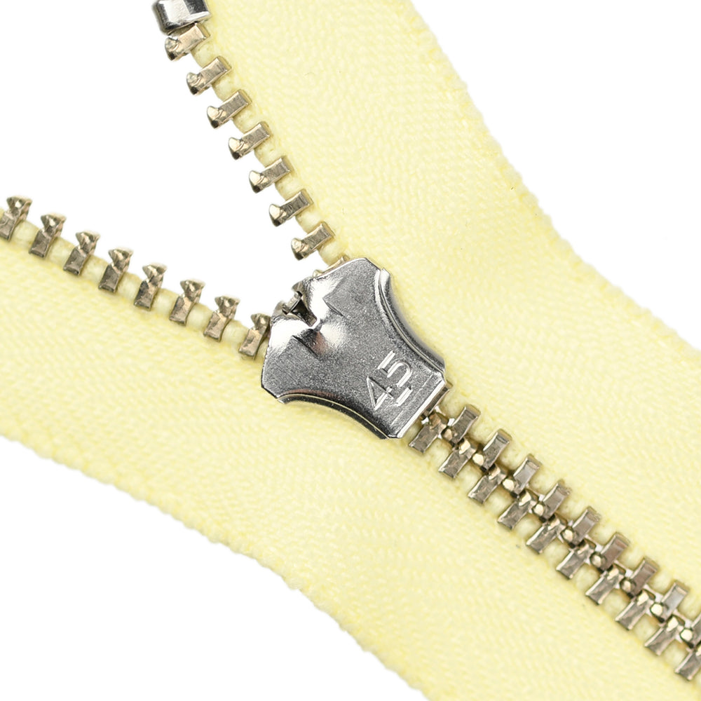Lightweight, 4.5 gauge jean zips designed specifically for use on jeans and jackets. Features a semi-automatic, flip-lock slider in a selection of metal finishes.