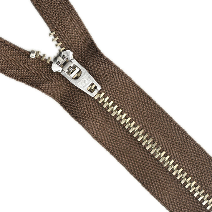 Lightweight gauge YKK jean zip designed for use on denim jeans and jackets with elements in nickel.