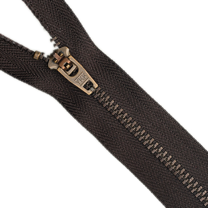 Lightweight YKK jean zip designed for use on denim jeans and jackets in Antique Gold.