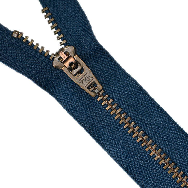 Lightweight YKK jean zip designed for use on denim jeans and jackets in Antique Gold.
