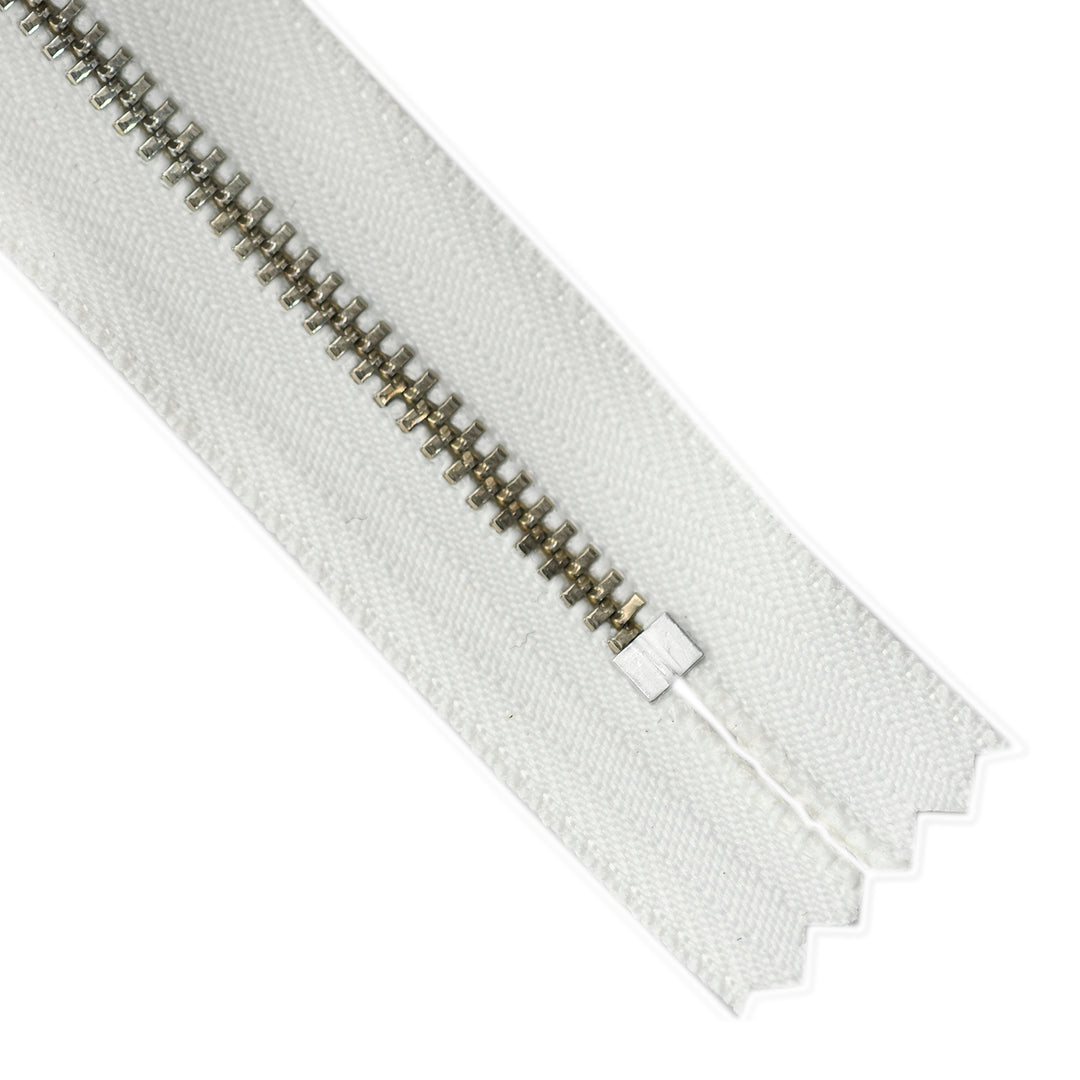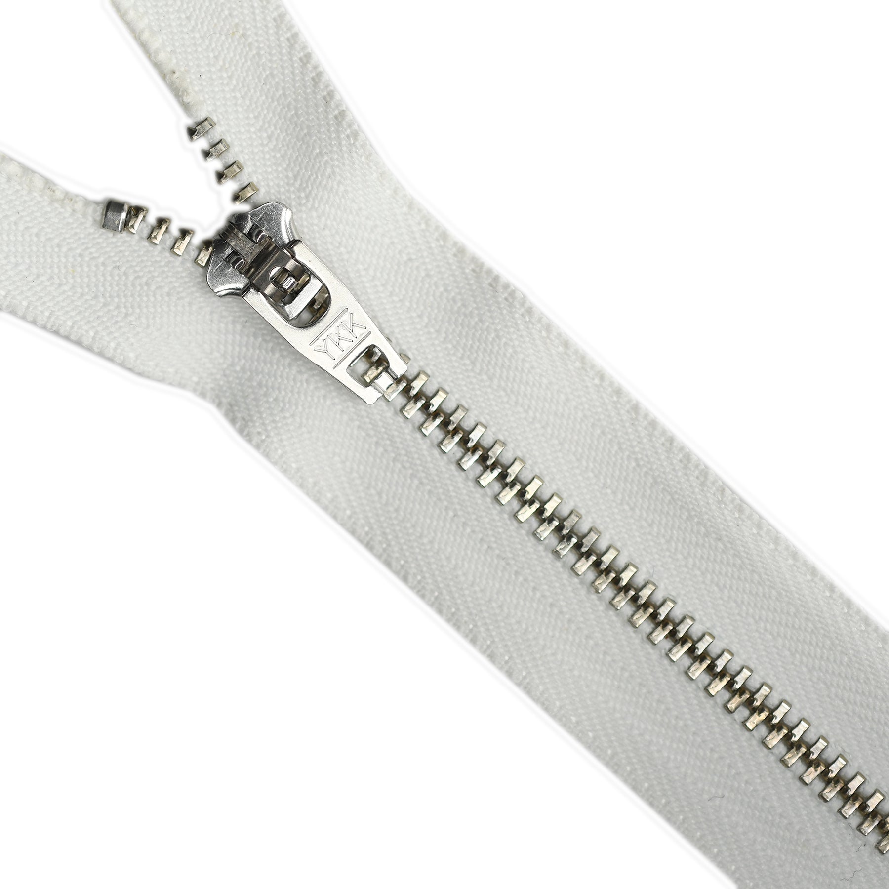 Lightweight gauge YKK jean zip designed for use on denim jeans and jackets with elements in nickel.