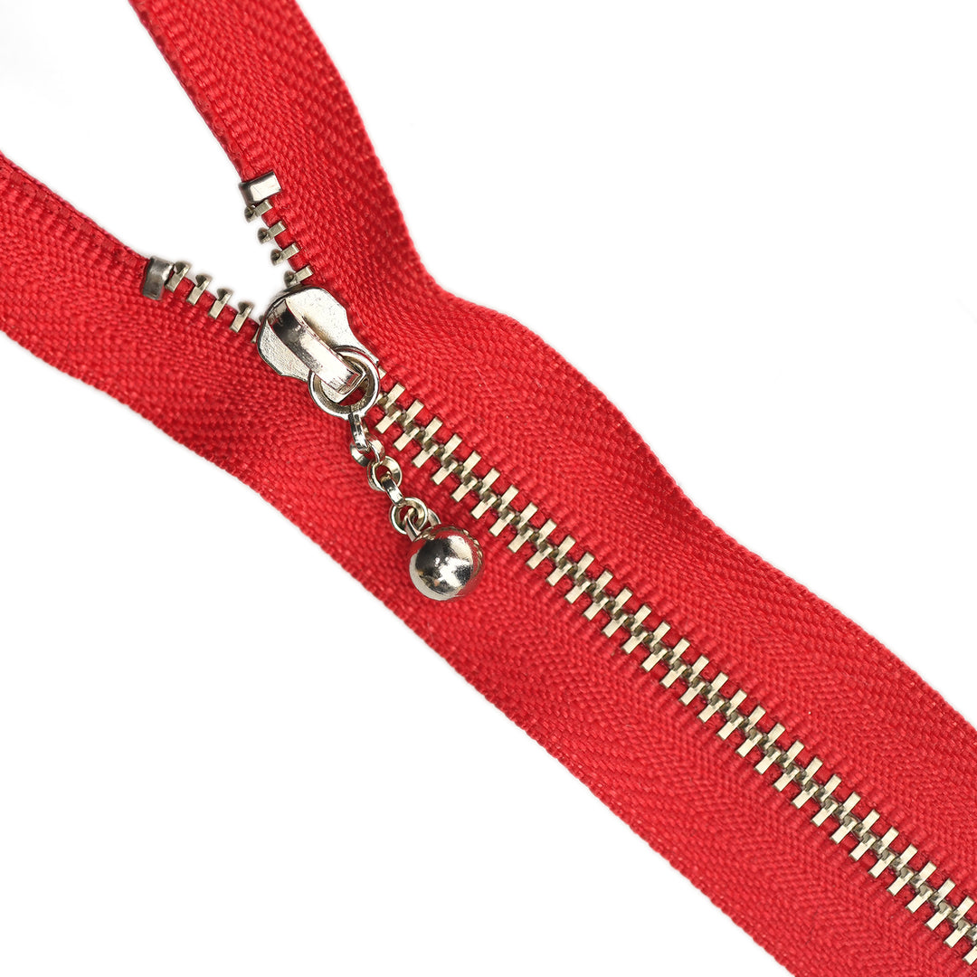 METAL CLOSED-END ZIP NO.3 NICKEL CHAIN-PULL COL RED