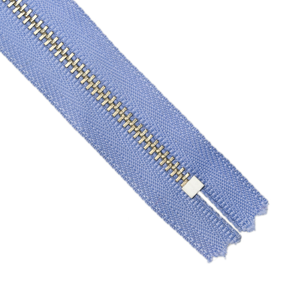 Lightweight metal zipper with excellent closure characteristics, durability and colour-fast tape.