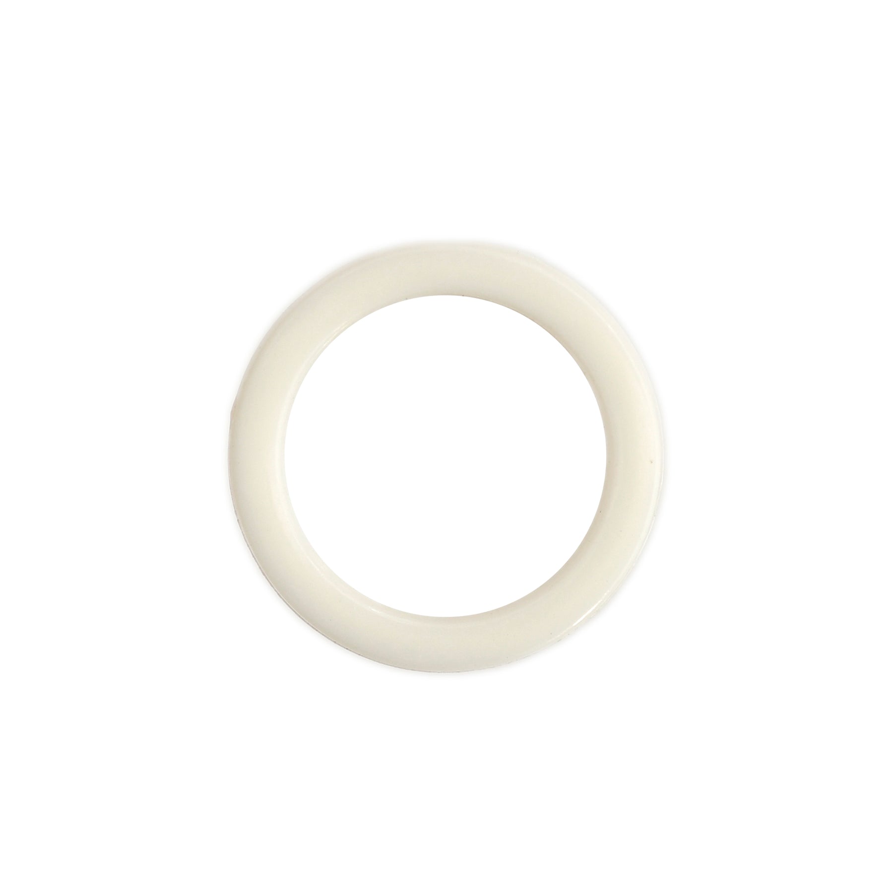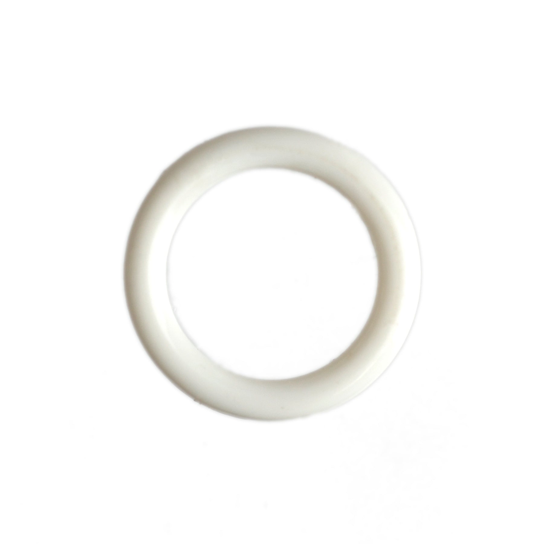 Lightweight plastic rings suitable for strap adjustment on swimwear, garments and lingerie.