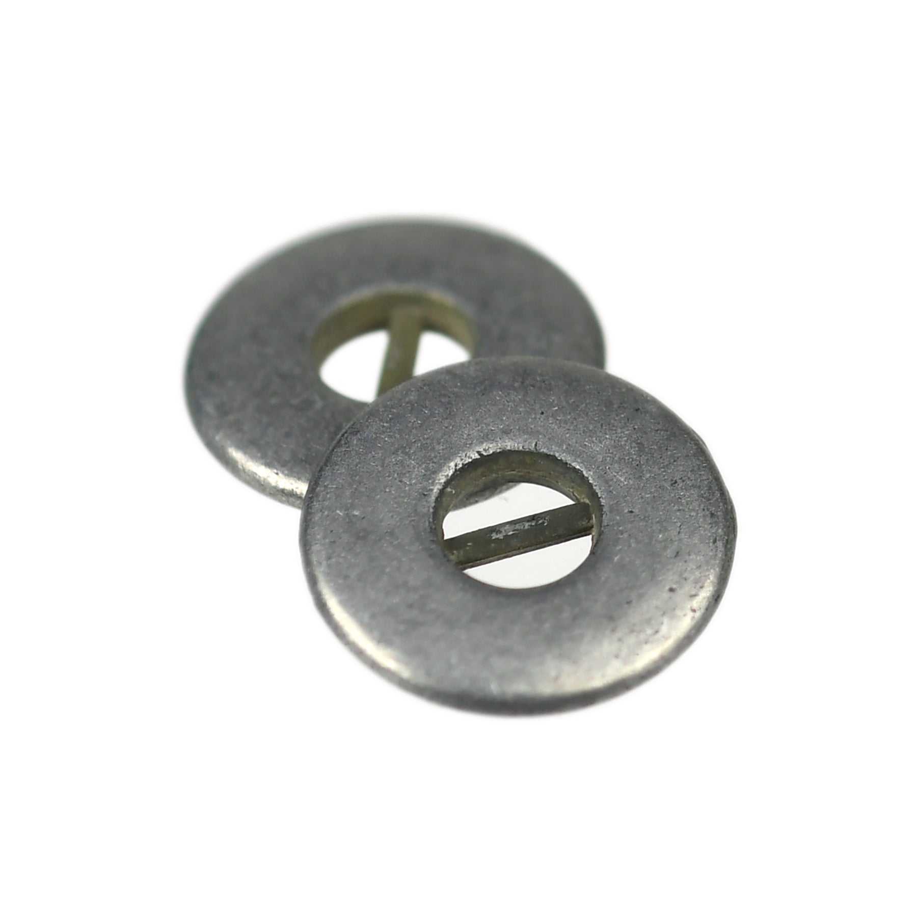 Flat metal button with bar-shank and matte finish. Suitable for costume, garments, trousers and decorative applications.