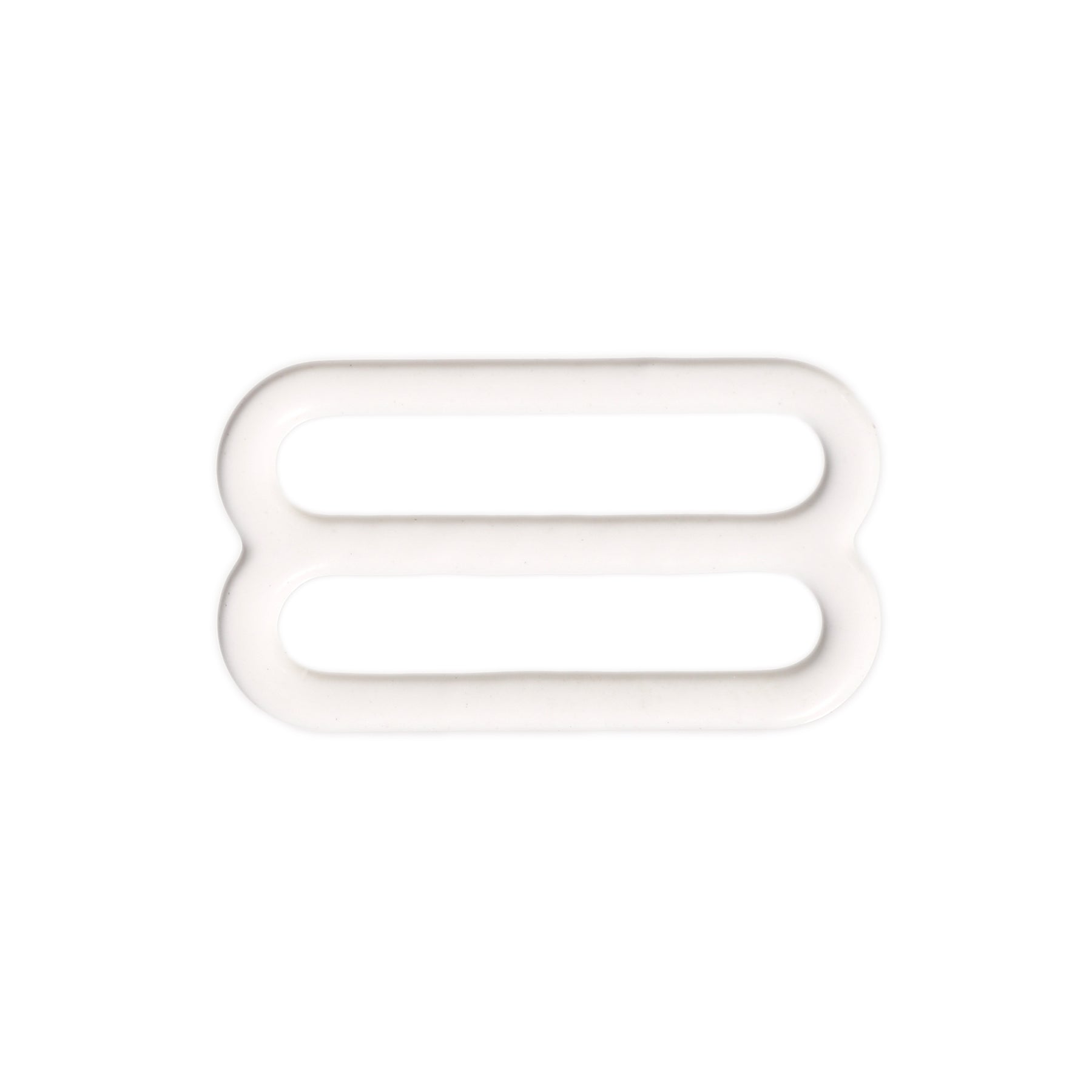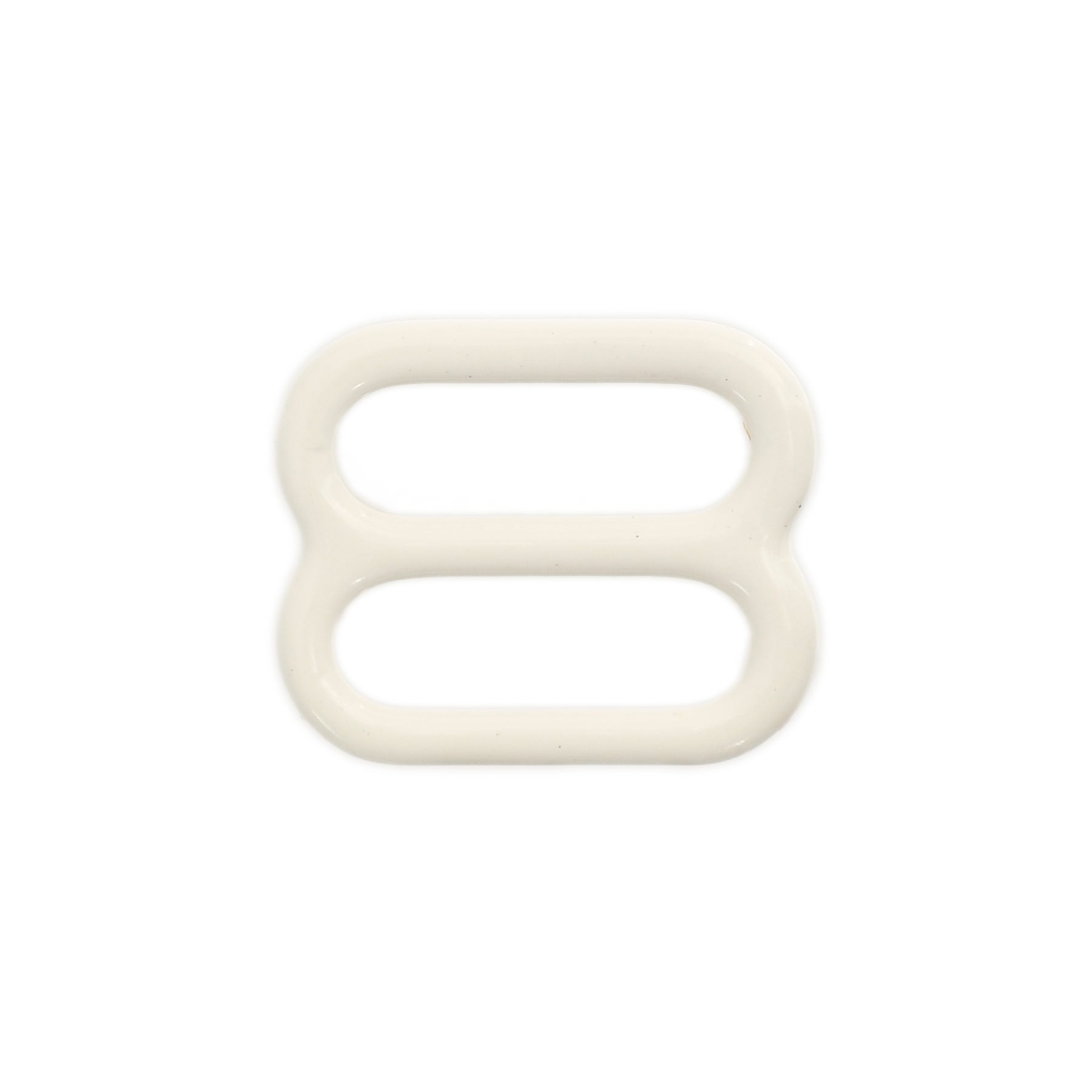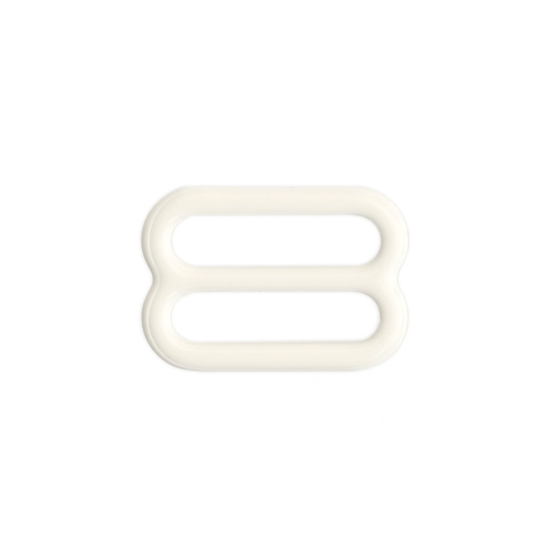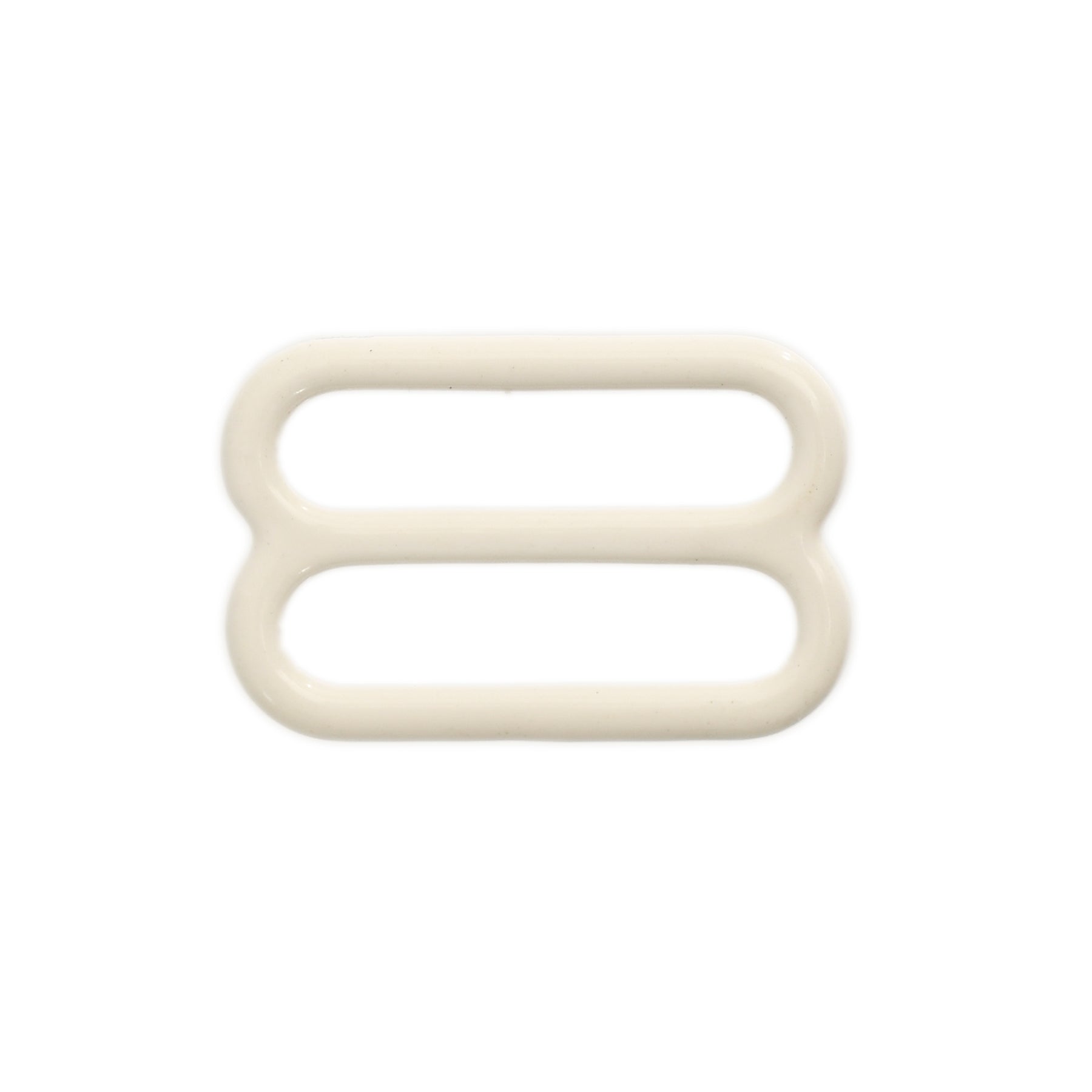 Coated metal slides suitable for garments and lingerie. Smooth finish provides reliable and secure attachment of straps and tapes.