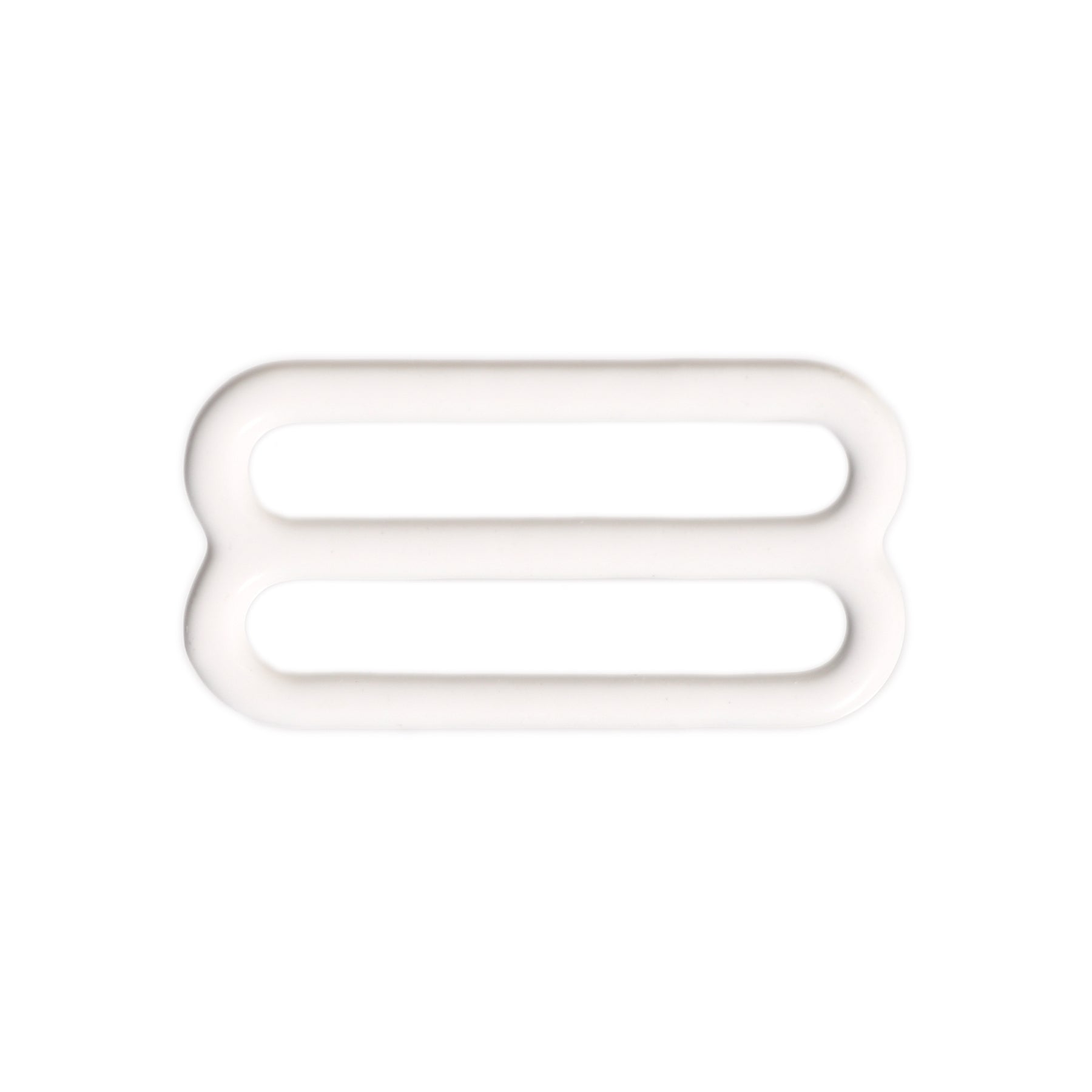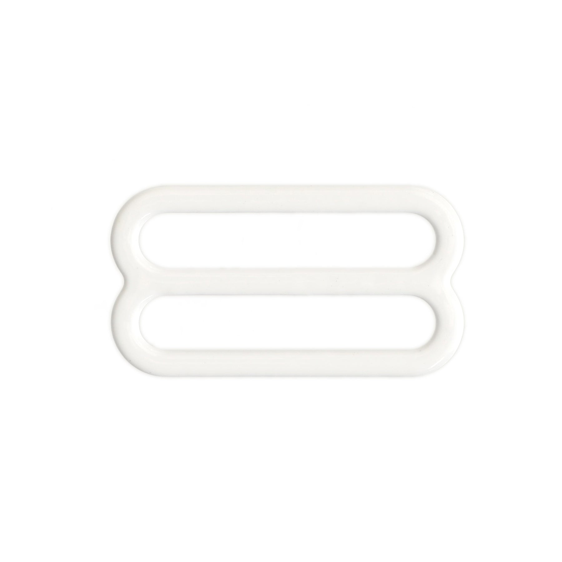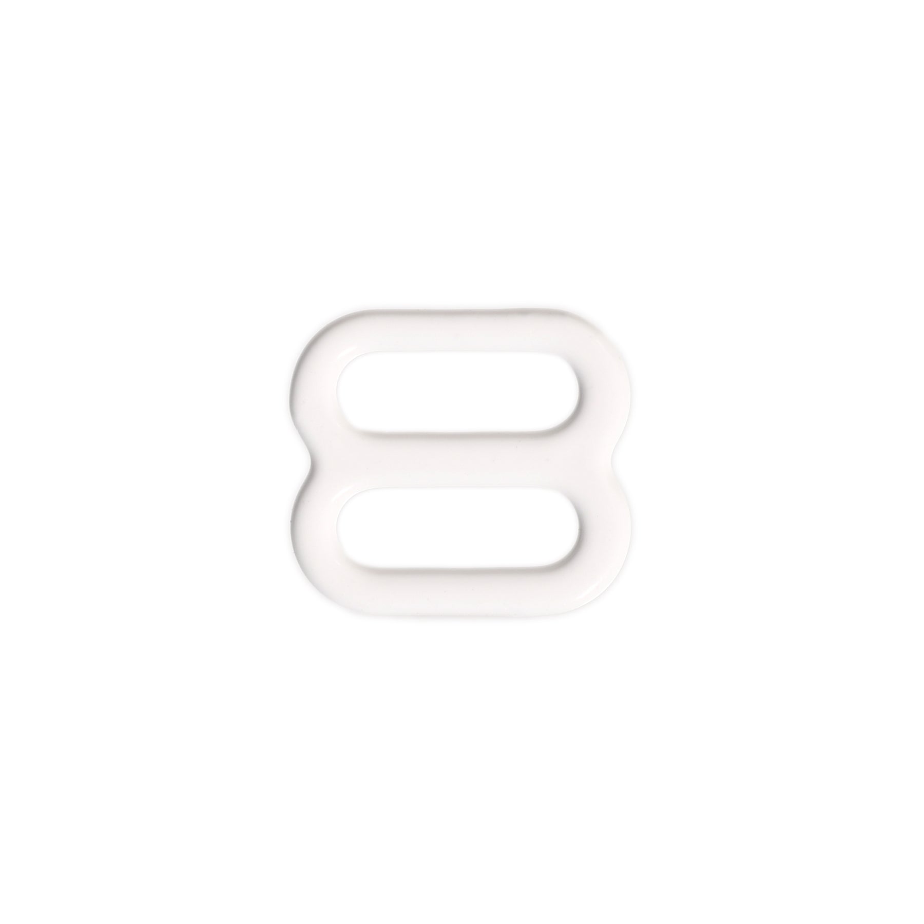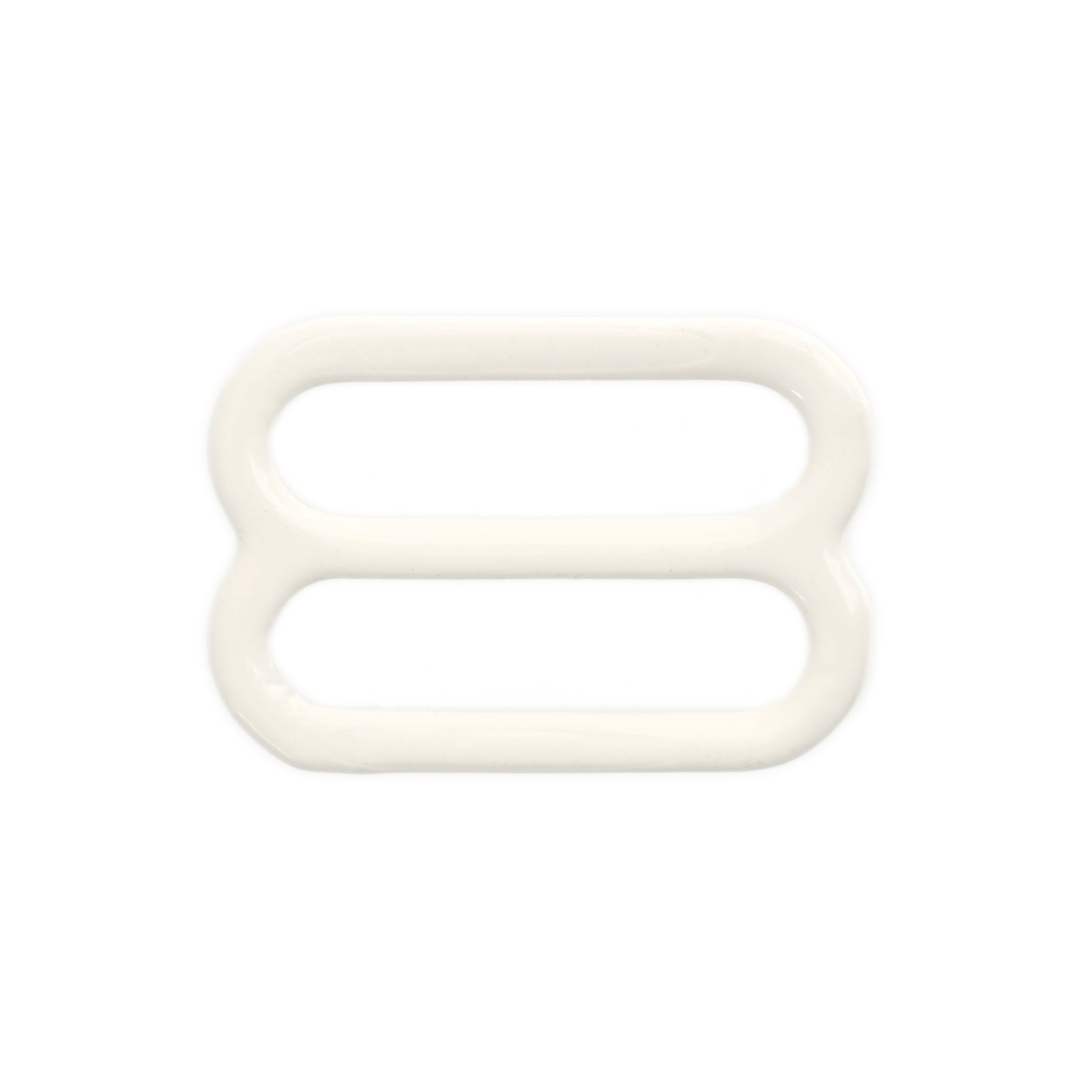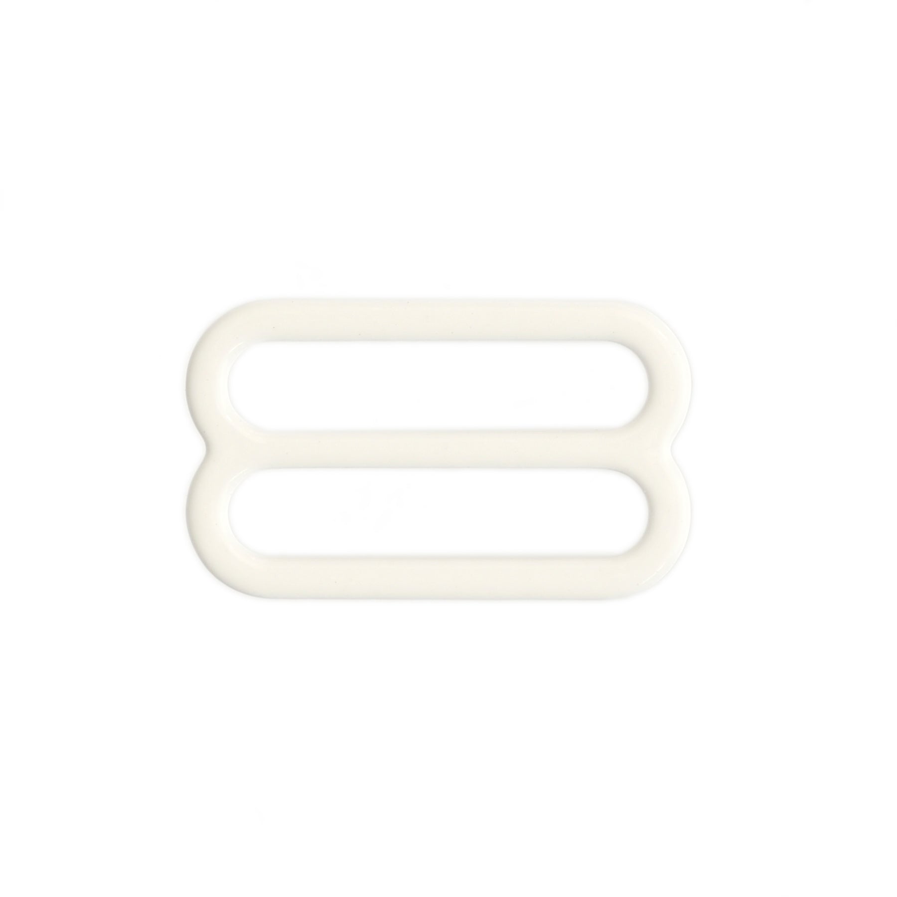 Coated metal slides suitable for garments and lingerie. Smooth finish provides reliable and secure attachment of straps and tapes.