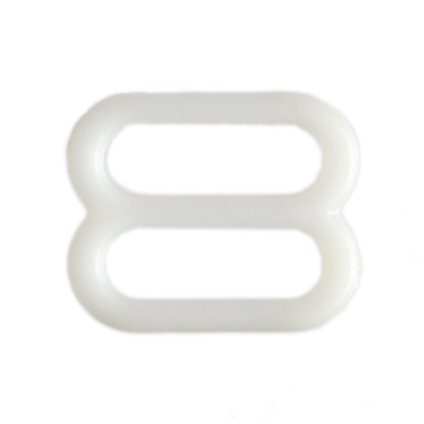 Lightweight plastic slides suitable for strap adjustment on swimwear and lingerie.