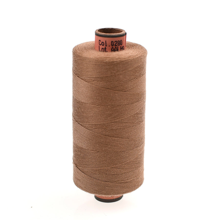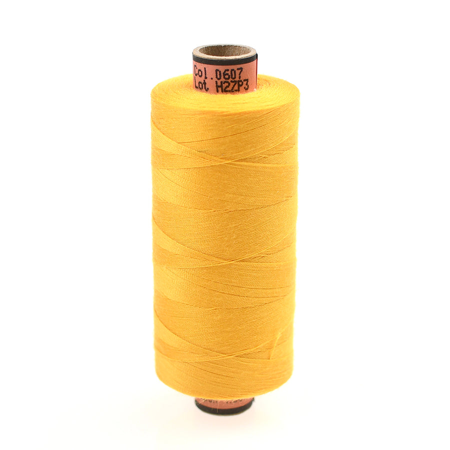 Spun polyester threads are created for use on industrial and domestic machines. They feature twisted yarns to create a smooth, consistent texture suited to passage through a sewing machine.