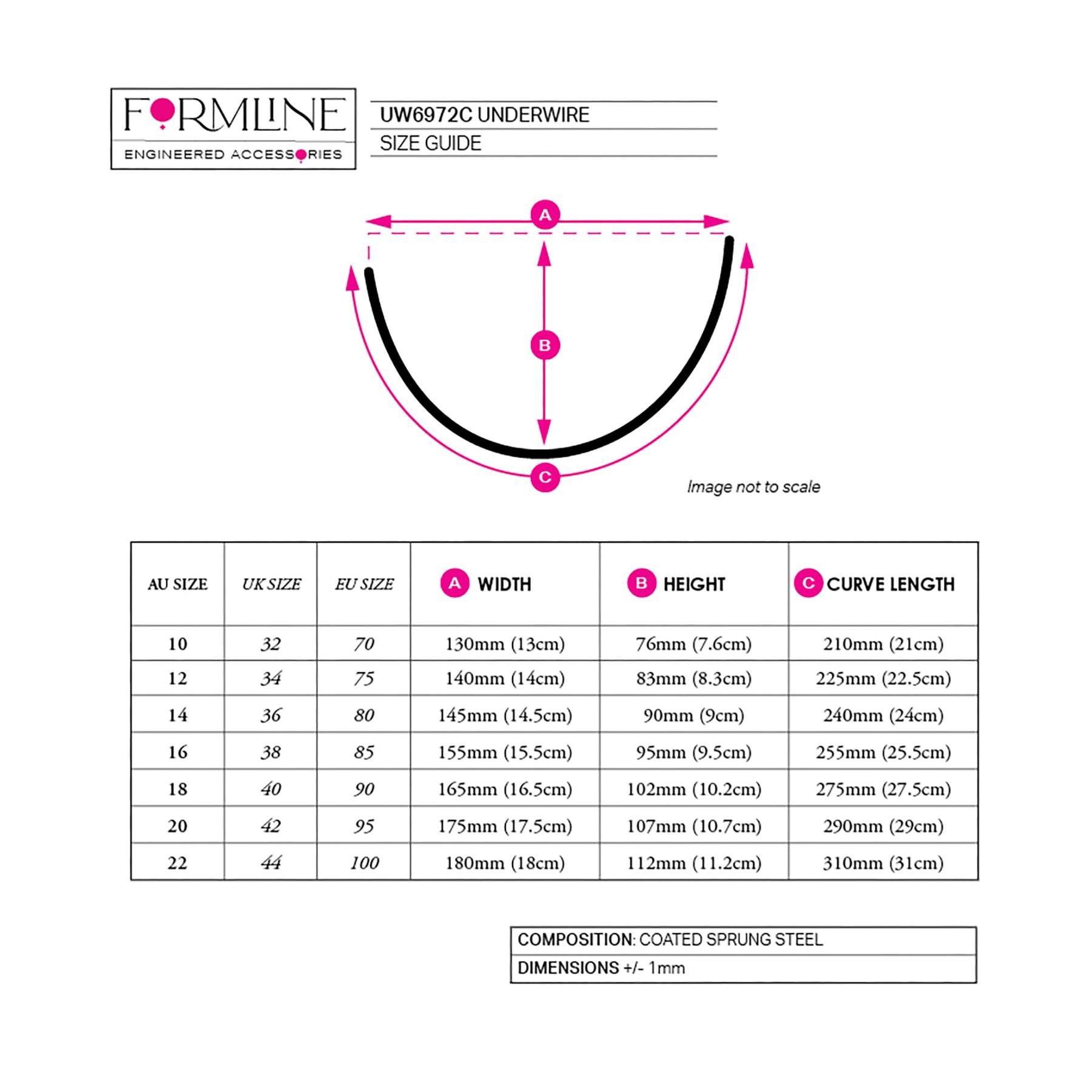 Style UW6972C coated, sprung-steel underwires are designed for C-cup volume requirements across sizes 10 to 22.