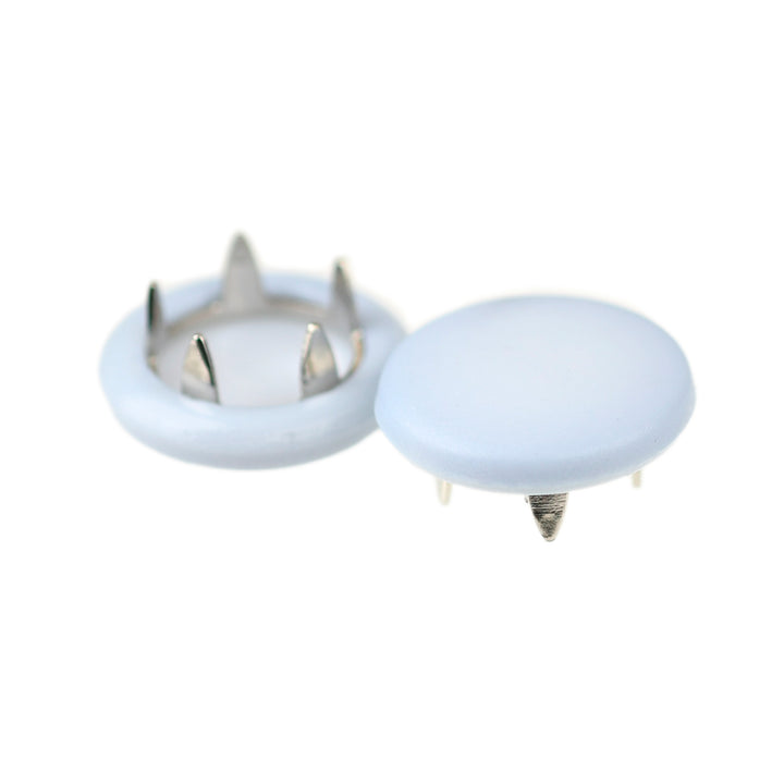 Metal prongs covered with plastic cap for use on garments and products for babies and young children.