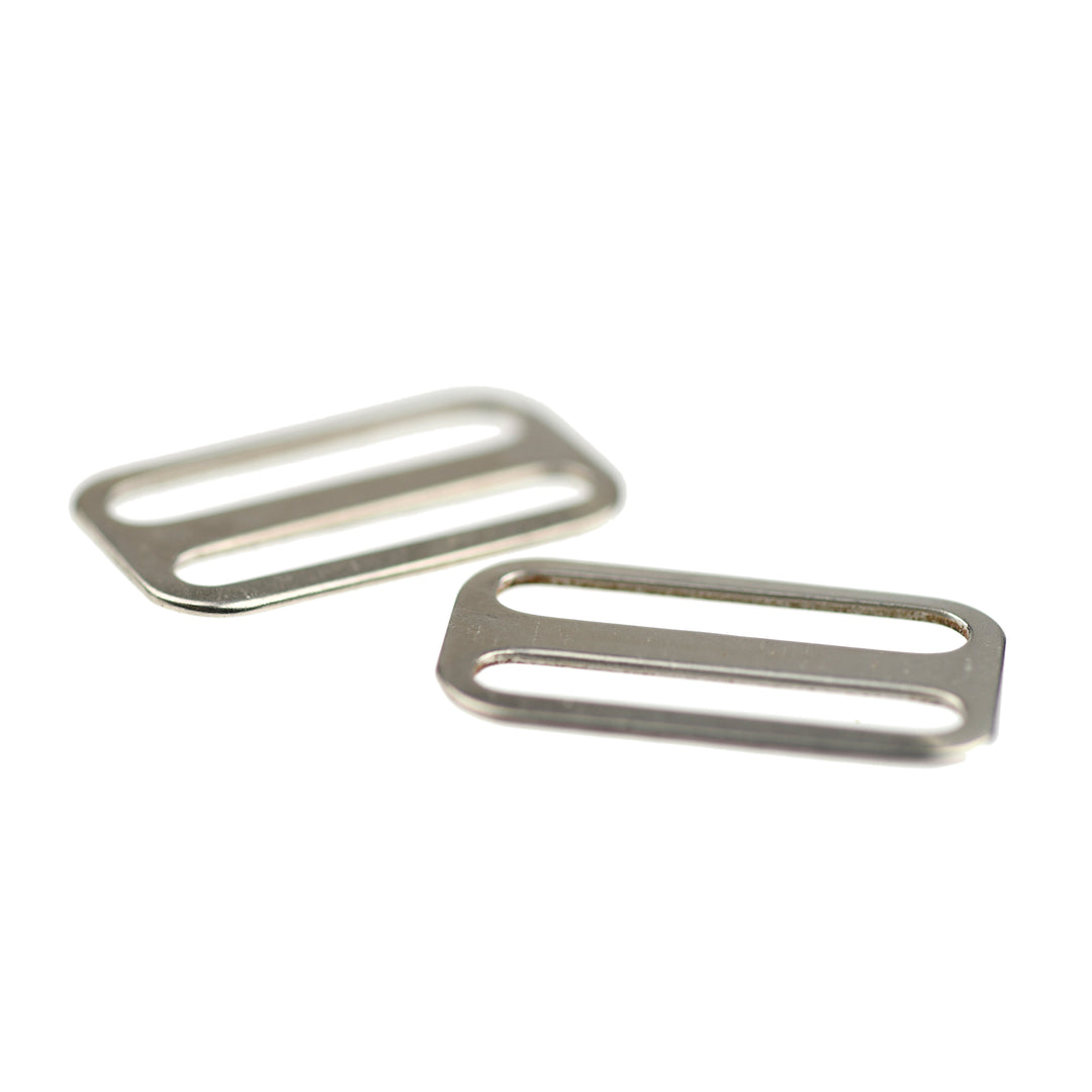 Hard-wearing coated steel slide for strap adjustments on garments and lingerie.