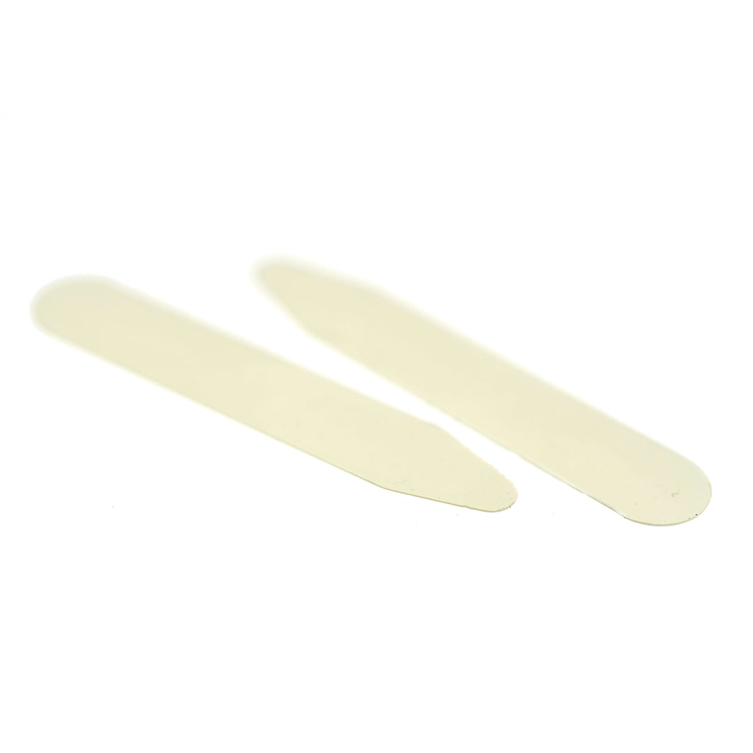 Lightweight and flexible collar stays for use in shirts. Smooth, ultra-light acrylic is suitable for delicate fabrics. Length of stay is 45mm with single point at one end and rounded edges.
