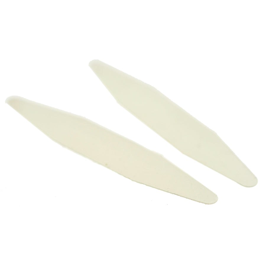 Lightweight and flexible collar stays for use in shirts. Smooth, ultra-light acrylic is suitable for delicate fabrics. Length of stay is 60mm with dual-point ends and rounded finish.