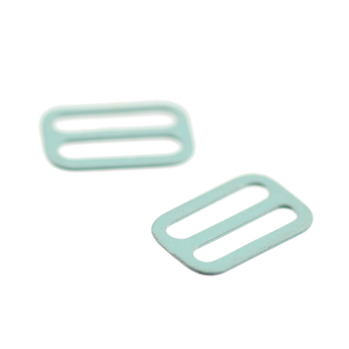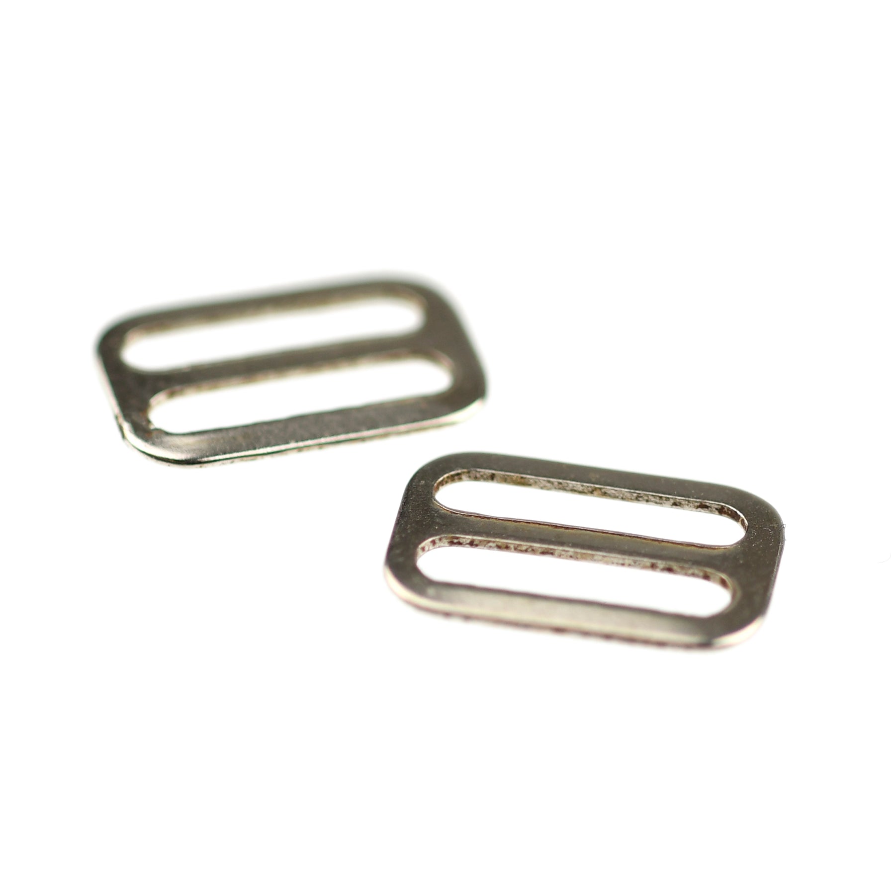 Hard-wearing coated steel slide for strap adjustments on garments and lingerie.