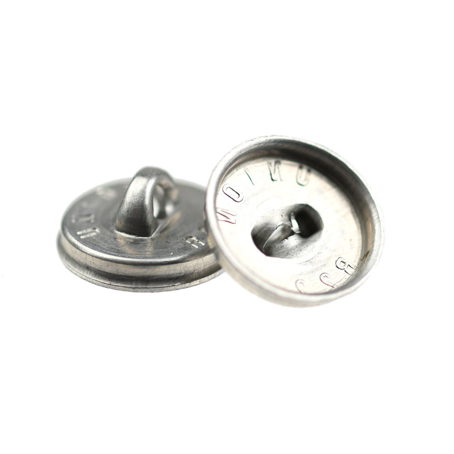 Premium quality metal button moulds/shells for self-covered buttons. Ideal for bridal and formal wear. Back section only; features a shank for hand sewing to garments. Button top sold separately.