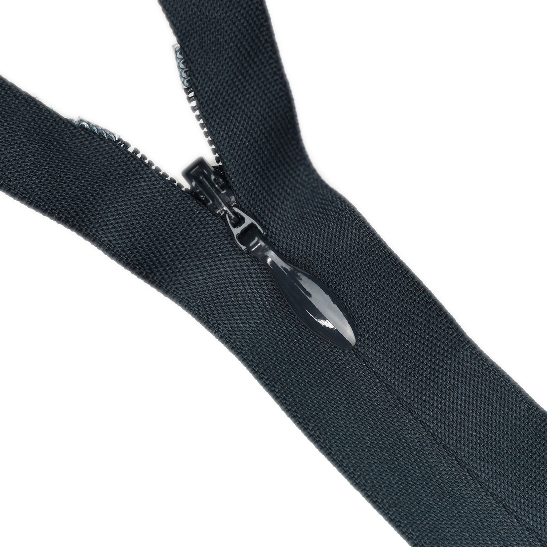 Large coil size and heavy poly cotton tape provide firm and durable closure. Features colour-matched teardrop slider.