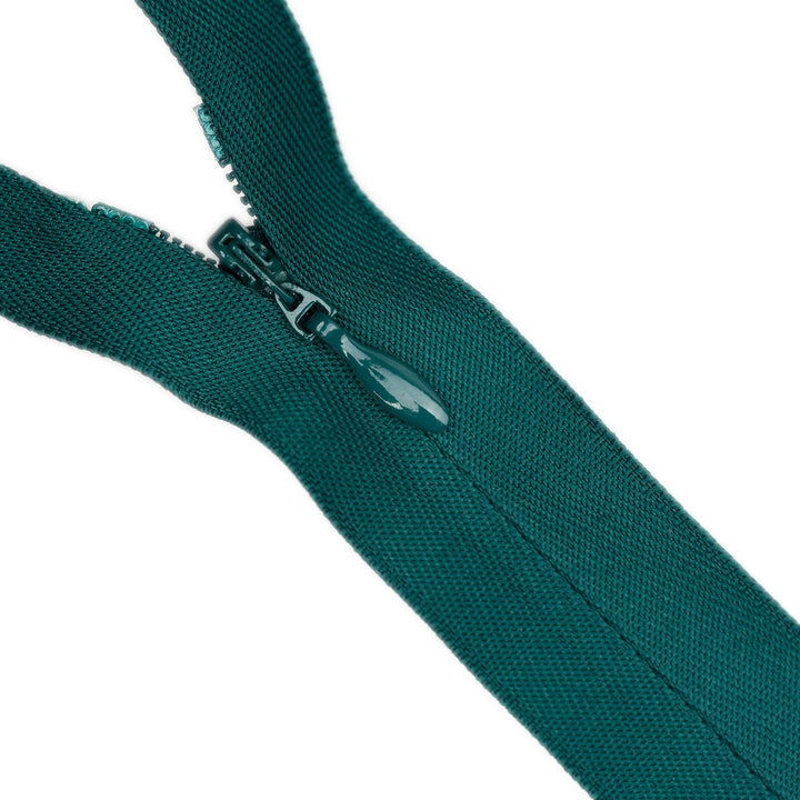 Large coil size and heavy poly cotton tape provide firm and durable closure. Features colour-matched teardrop slider.