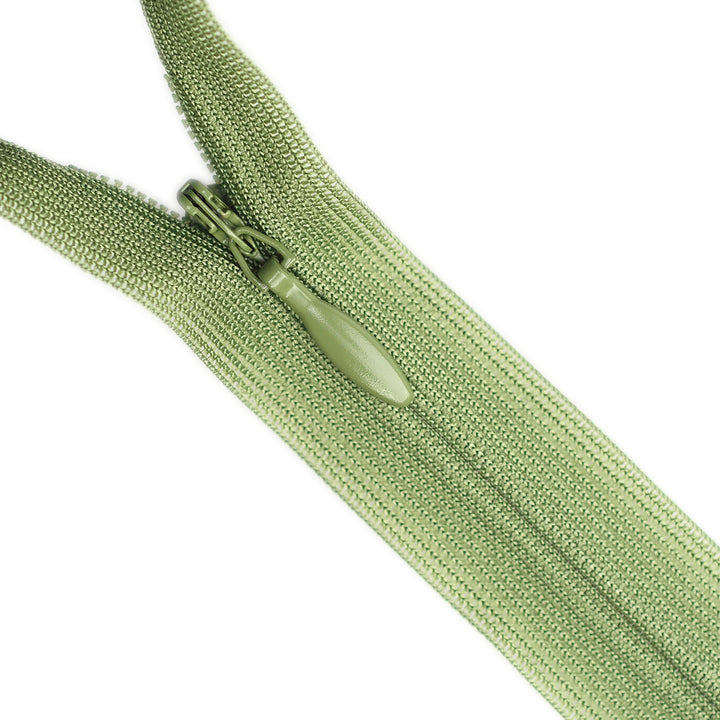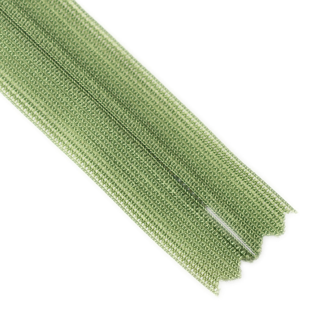 Invisible zip with lightweight mesh tape suitable for skirts, dresses, pants, soft furnishings and other applications where an unobtrusive zip is required. Discreet zip that fits into the seam with only the slim, elongated teardrop slider visible.