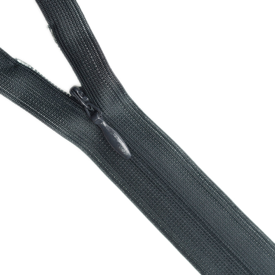 Invisible zip with lightweight mesh tape suitable for skirts, dresses, pants, soft furnishings and other applications where an unobtrusive zip is required. Discreet zip that fits into the seam with only the slim, elongated teardrop slider visible.