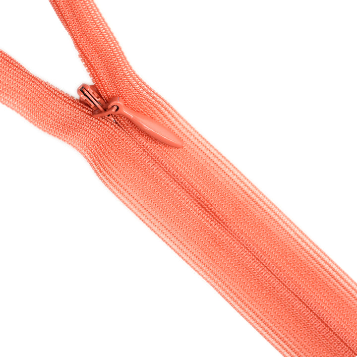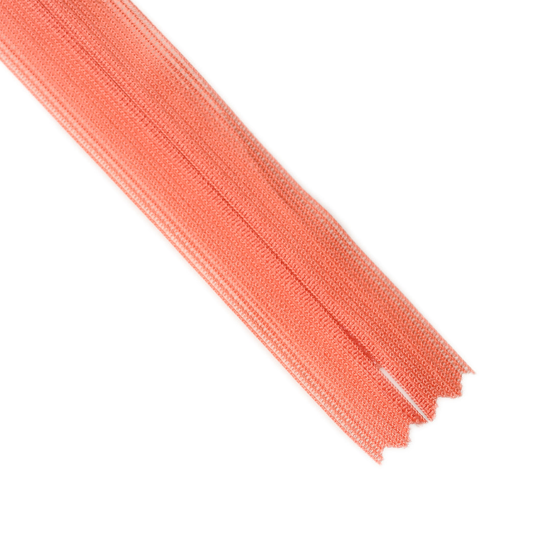 Invisible zip with lightweight mesh tape suitable for skirts, dresses, pants, soft furnishings and other applications where an unobtrusive zip is required. Discreet zip that fits into the seam with only the slim, elongated teardrop slider visible.