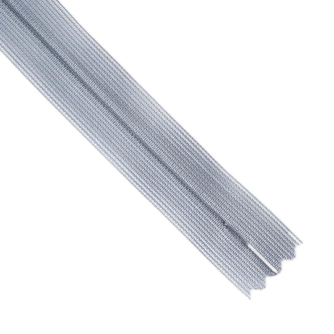 Invisible zip with lightweight mesh tape suitable for skirts, dresses, pants, soft furnishings and other applications where an unobtrusive zip is required. Discreet zip that fits into the seam with only the slim, elongated teardrop slider visible.
