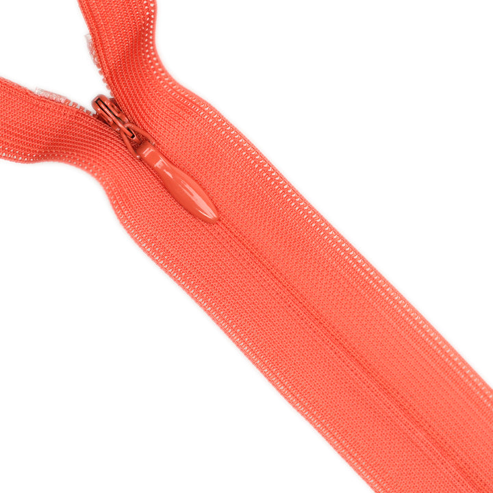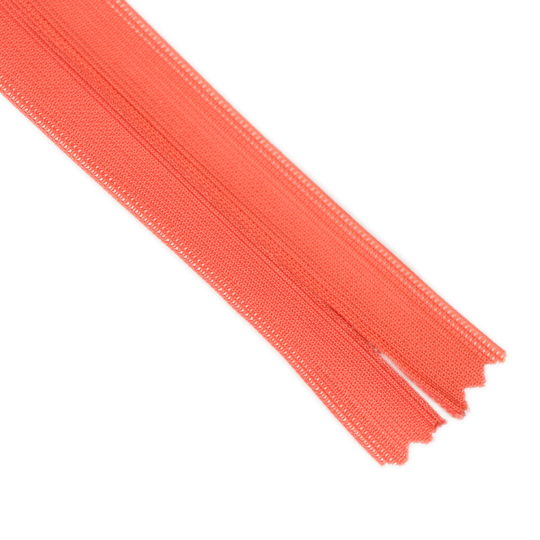 Invisible zip with lightweight mesh tape suitable for skirts, dresses, pants, soft furnishings and other applications where an unobtrusive zip is required. Discreet zip that fits into the seam with only the slim, elongated teardrop slider visible.