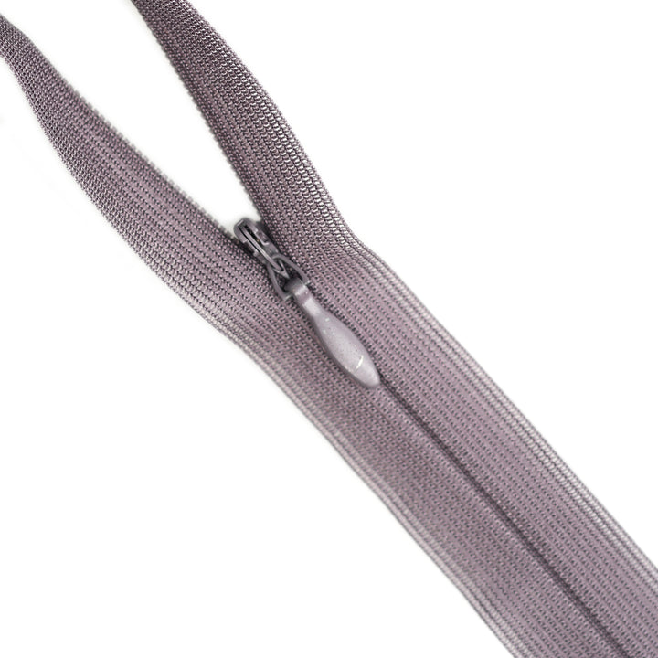 Invisible zip with lightweight mesh tape suitable for skirts, dresses, pants, soft furnishings and other applications where an unobtrusive zip is required. Discreet zip that fits into the seam with only the slim, elongated teardrop slider visible.