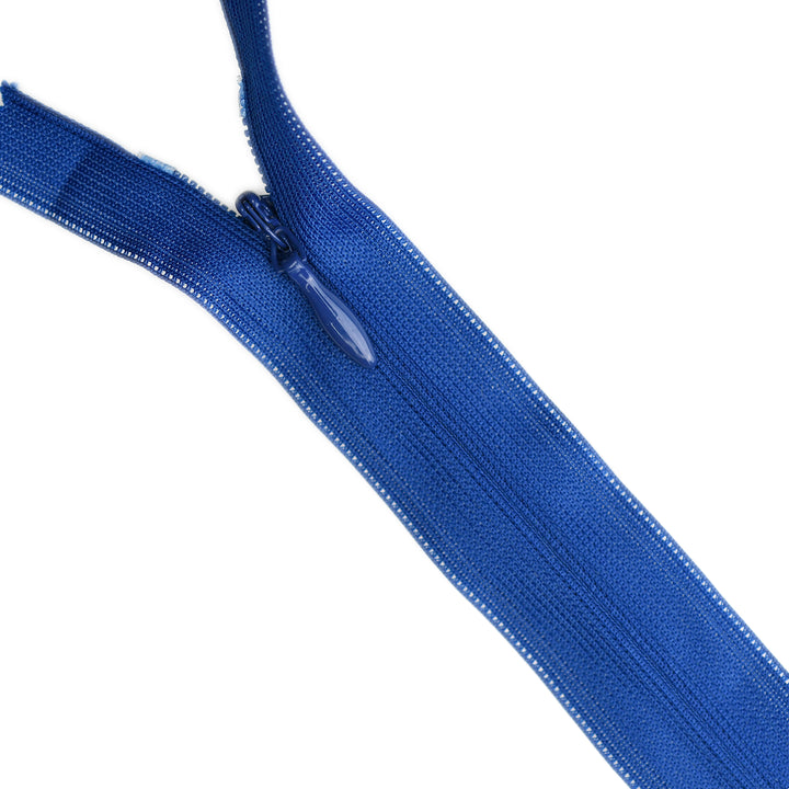 Invisible zip with lightweight mesh tape suitable for skirts, dresses, pants, soft furnishings and other applications where an unobtrusive zip is required. Discreet zip that fits into the seam with only the slim, elongated teardrop slider visible.