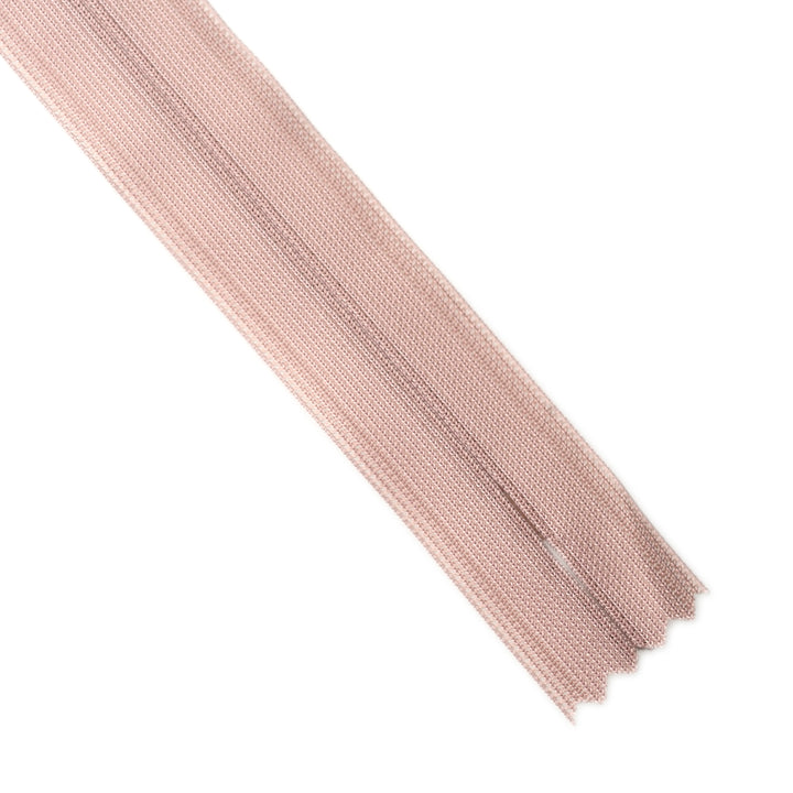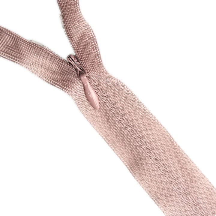 Invisible zip with lightweight mesh tape suitable for skirts, dresses, pants, soft furnishings and other applications where an unobtrusive zip is required. Discreet zip that fits into the seam with only the slim, elongated teardrop slider visible.