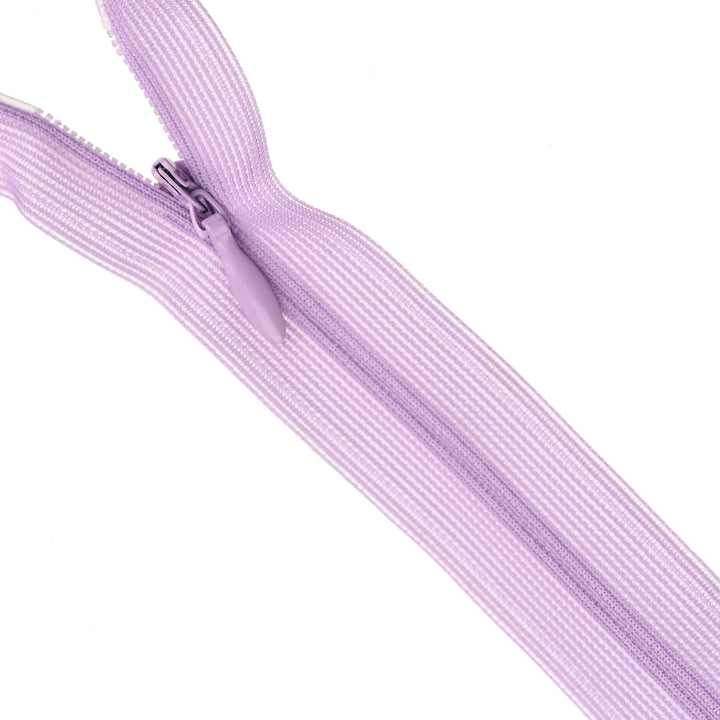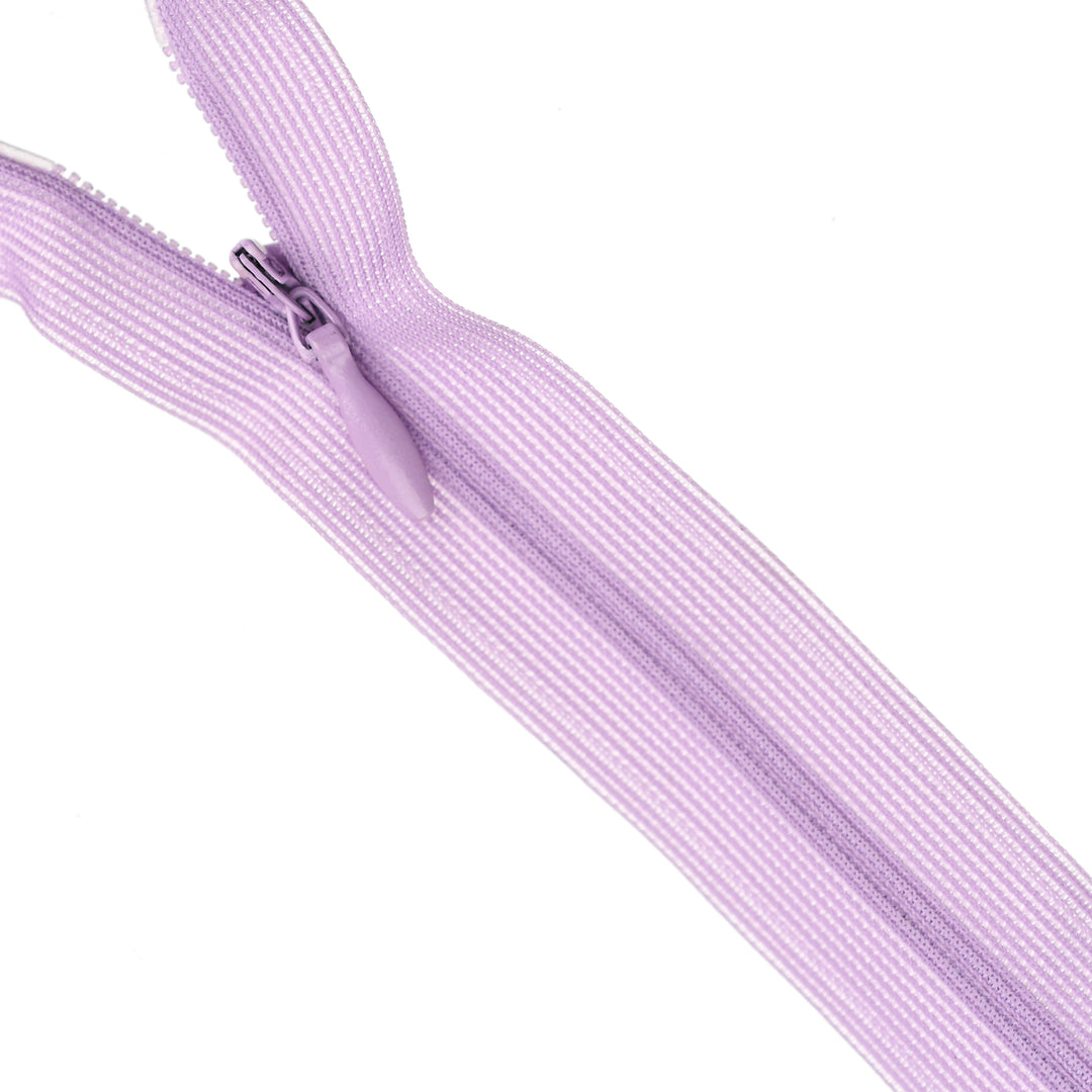Invisible zip with lightweight mesh tape suitable for skirts, dresses, pants, soft furnishings and other applications where an unobtrusive zip is required. Discreet zip that fits into the seam with only the slim, elongated teardrop slider visible.
