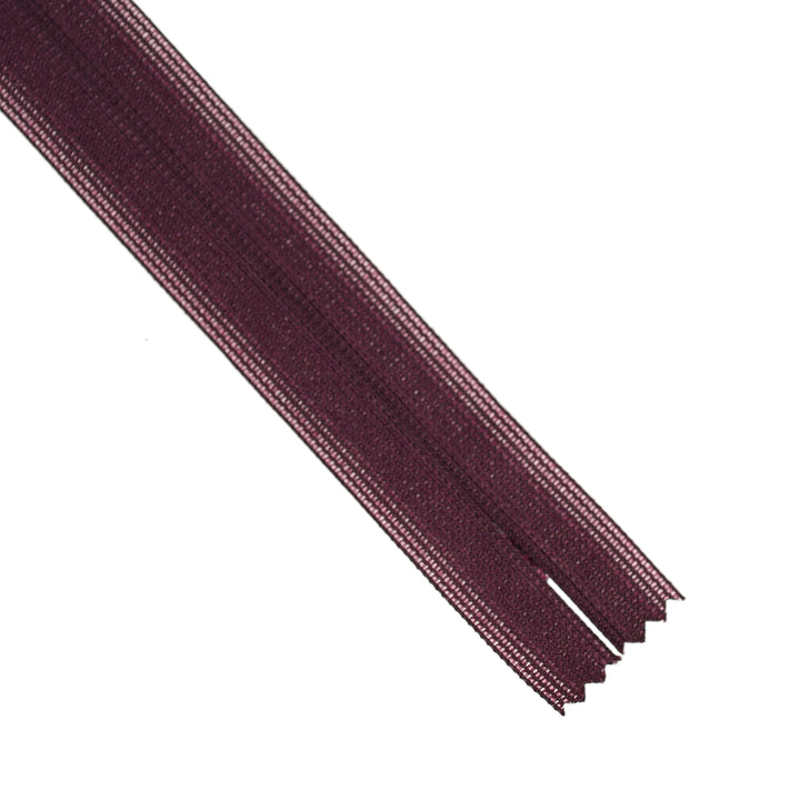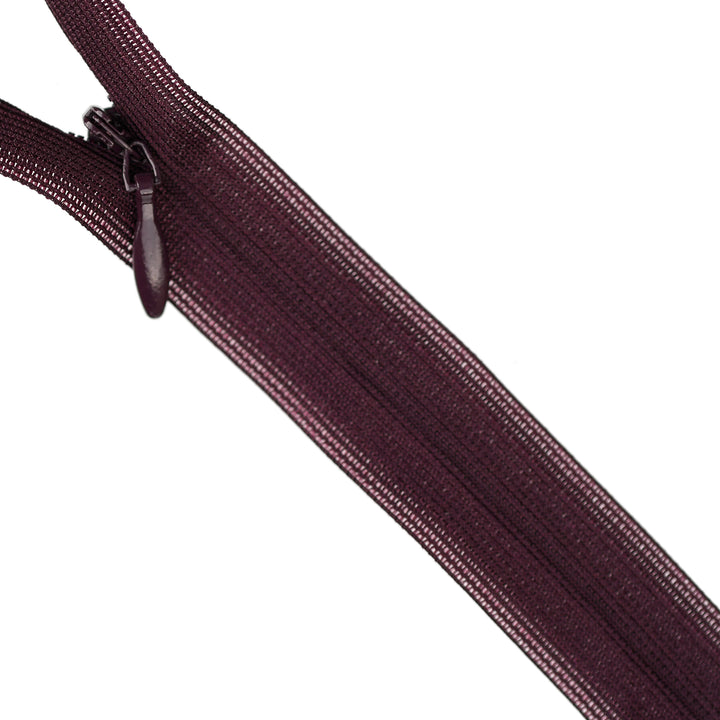 Invisible zip with lightweight mesh tape suitable for skirts, dresses, pants, soft furnishings and other applications where an unobtrusive zip is required. Discreet zip that fits into the seam with only the slim, elongated teardrop slider visible.