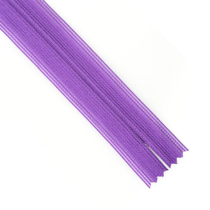 Invisible zip with lightweight mesh tape suitable for skirts, dresses, pants, soft furnishings and other applications where an unobtrusive zip is required. Discreet zip that fits into the seam with only the slim, elongated teardrop slider visible.