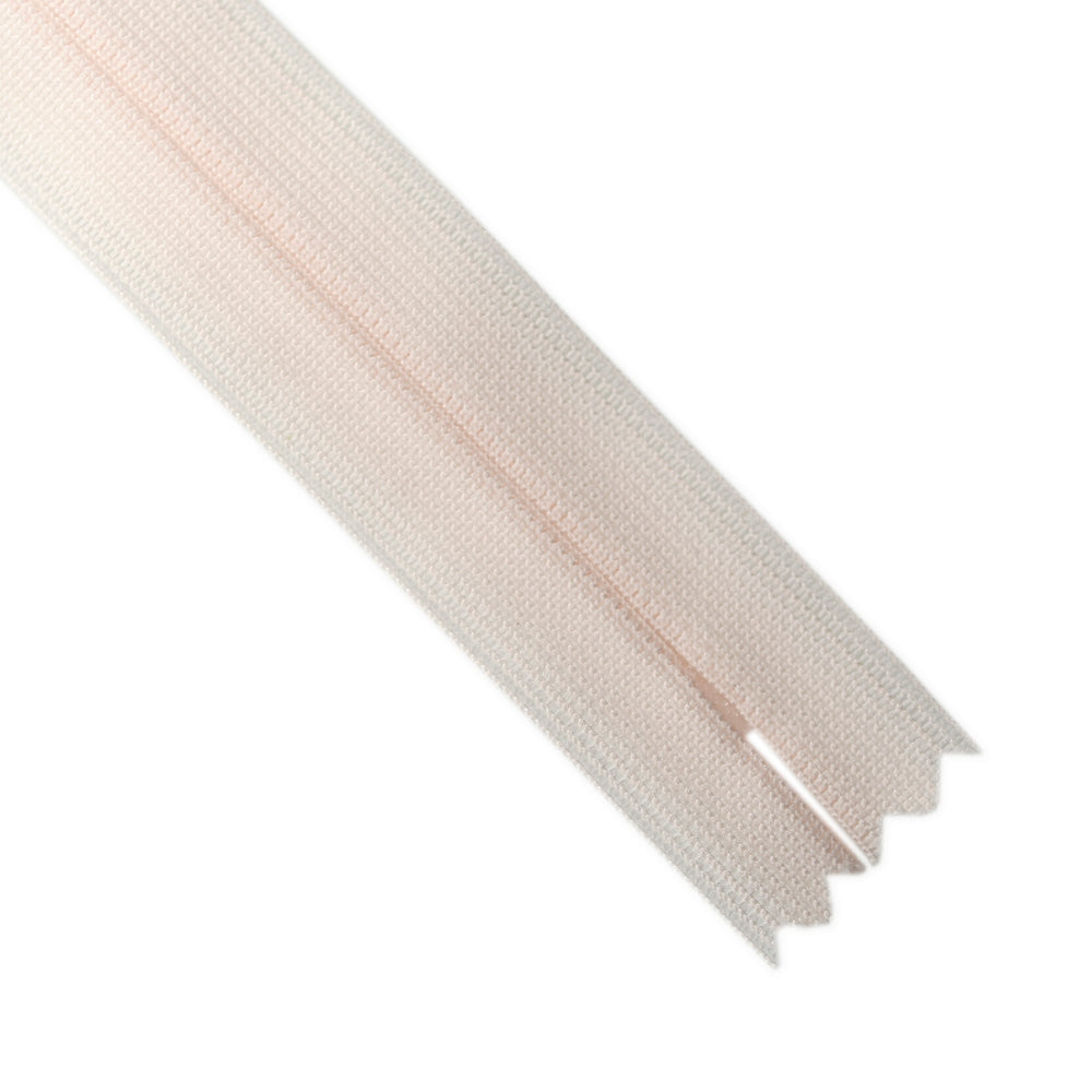 Invisible zip with lightweight mesh tape suitable for skirts, dresses, pants, soft furnishings and other applications where an unobtrusive zip is required. Discreet zip that fits into the seam with only the slim, elongated teardrop slider visible.