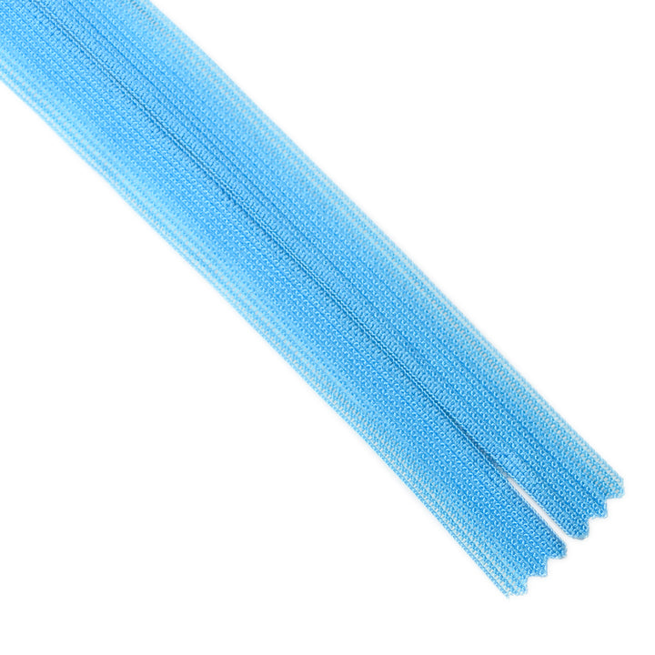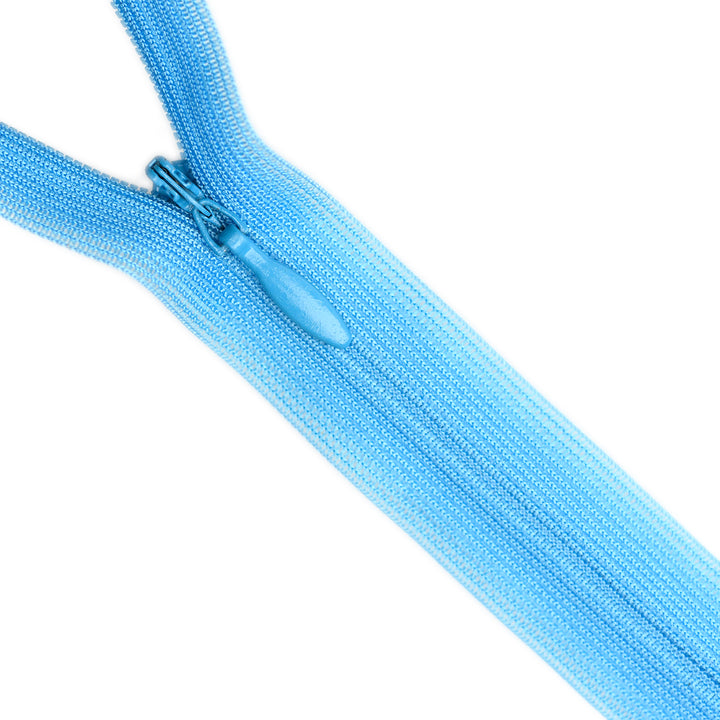 Invisible zip with lightweight mesh tape suitable for skirts, dresses, pants, soft furnishings and other applications where an unobtrusive zip is required. Discreet zip that fits into the seam with only the slim, elongated teardrop slider visible.